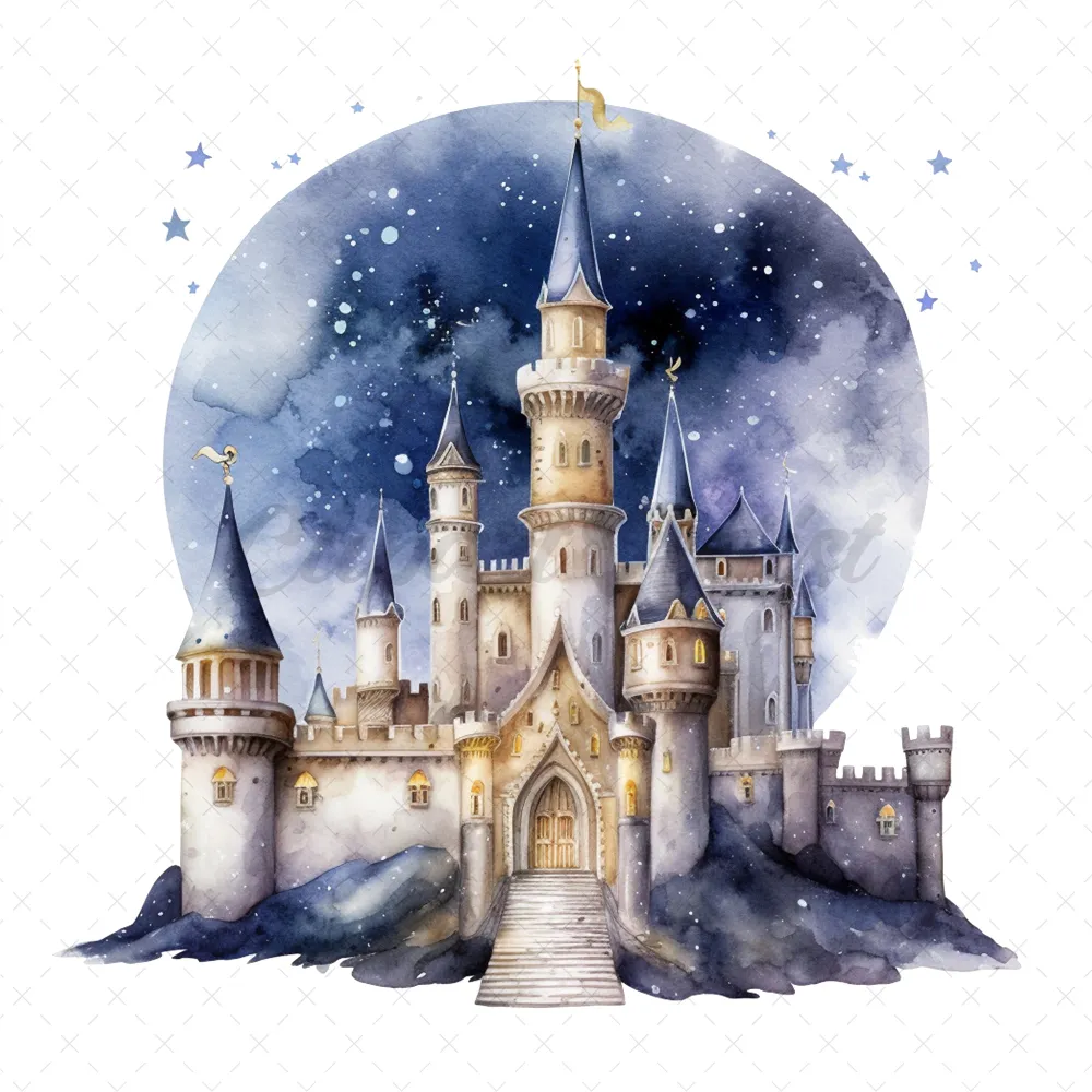 21 High-Quality Night Fantasy Castles Clipart – Night castles digital watercolor JPG instant download for commercial use – Digital download