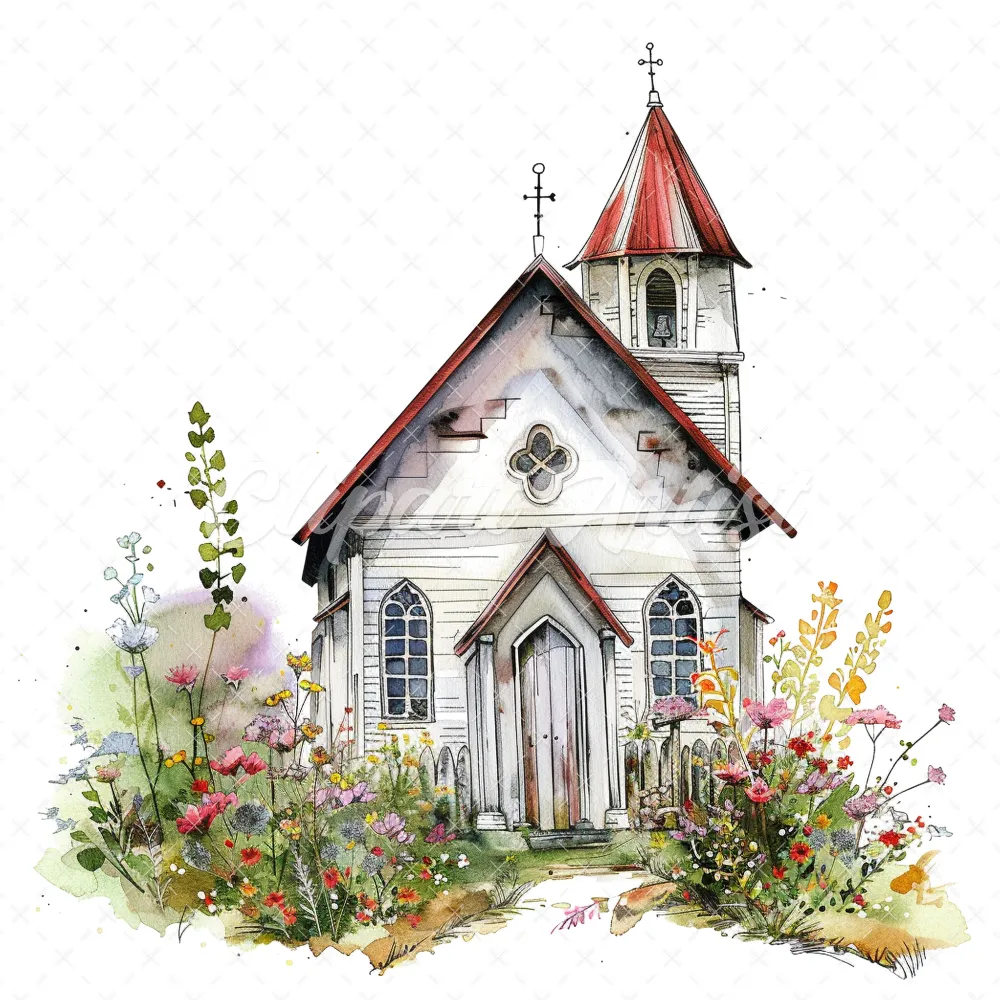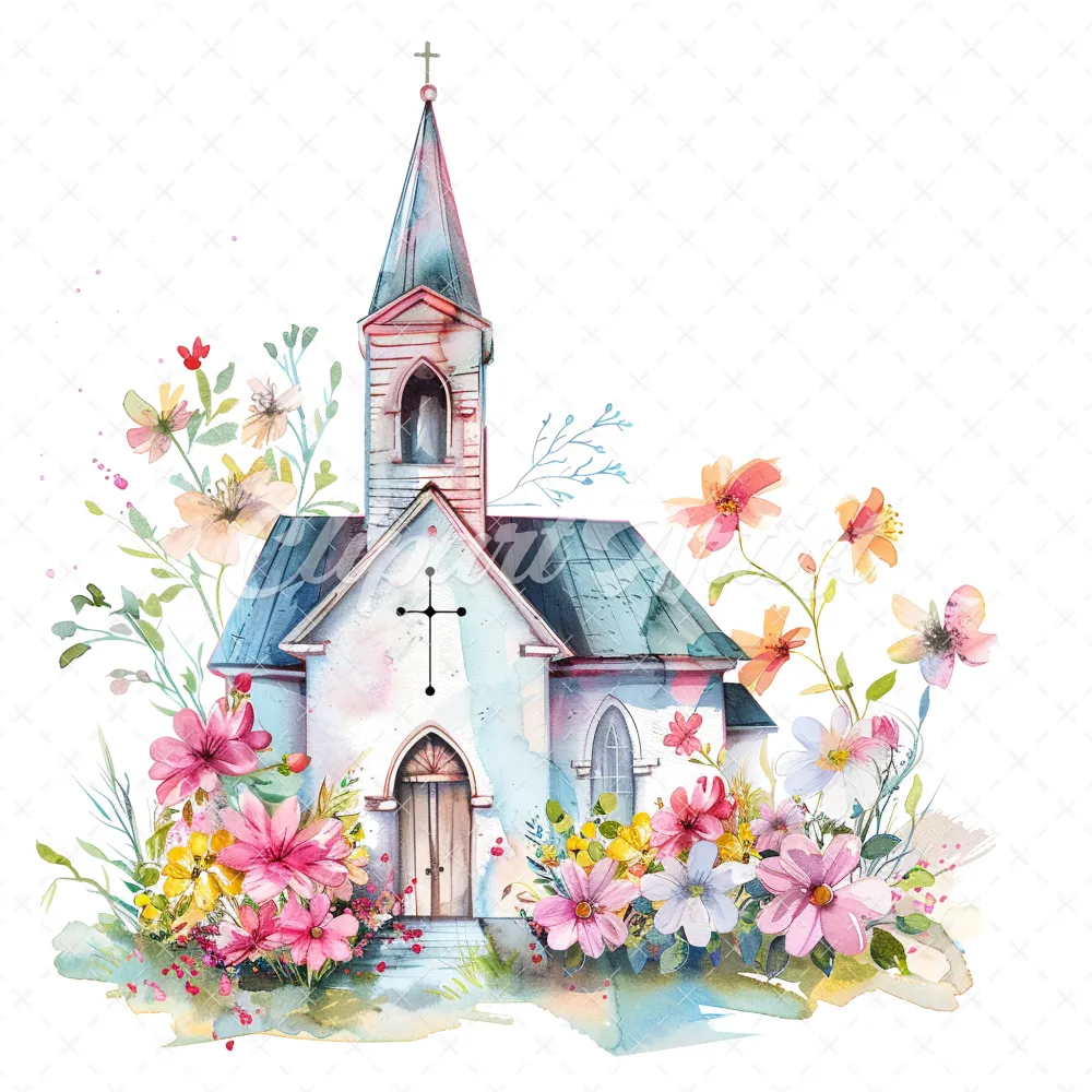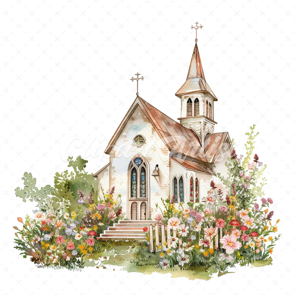 22 High-Quality Church Clipart – Church digital watercolor JPG instant download for commercial use – Digital download