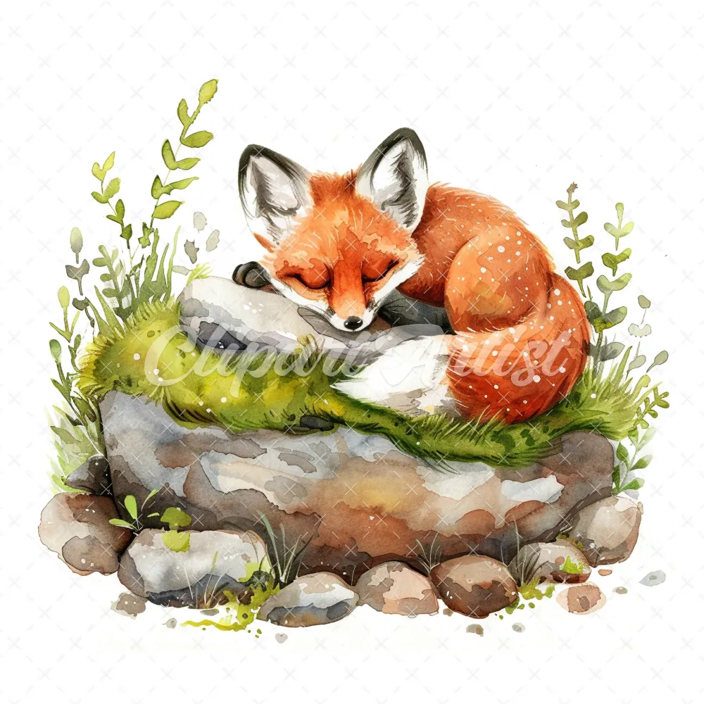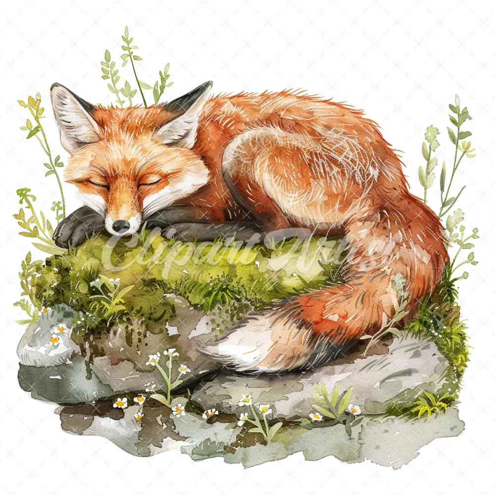 22 High-Quality Cute Fox Sleep Clipart – Cute fox sleep digital watercolor JPG instant download for commercial use – Digital download