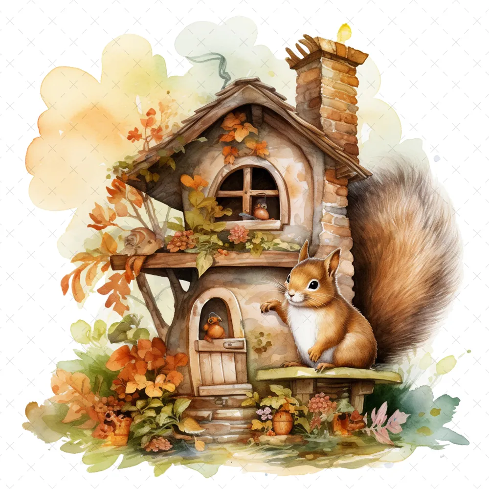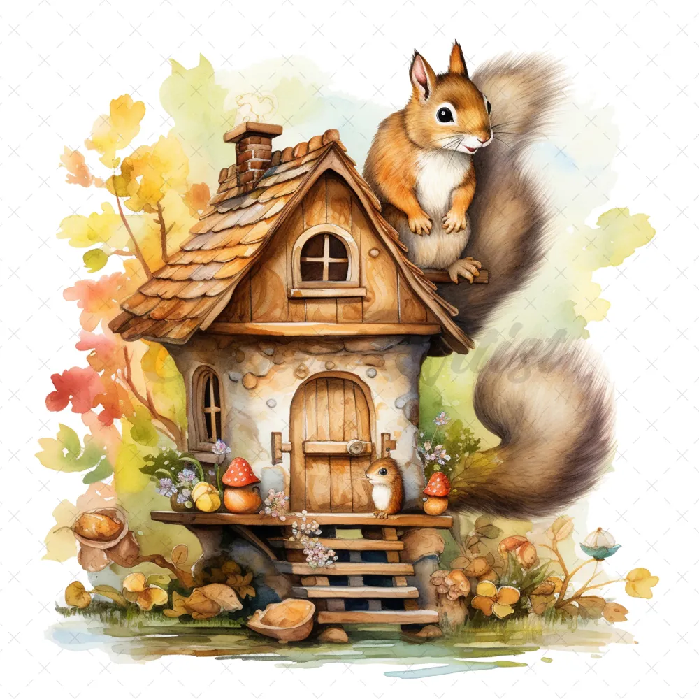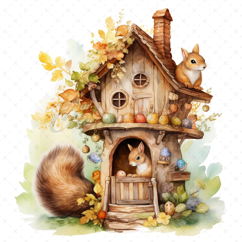 22 High-Quality Squirrel Houses Clipart – Squirrel house digital watercolor JPG instant download for commercial use – Digital download