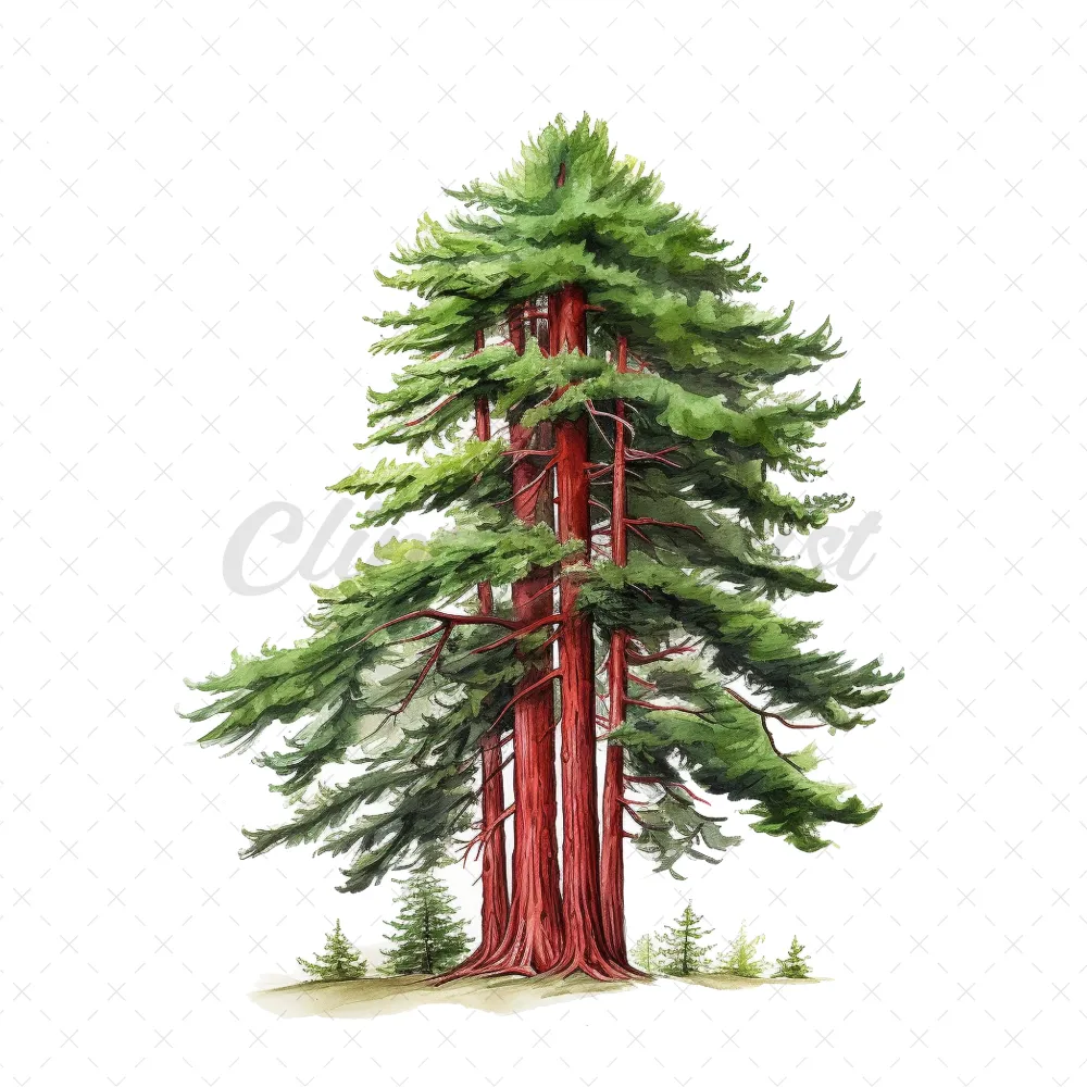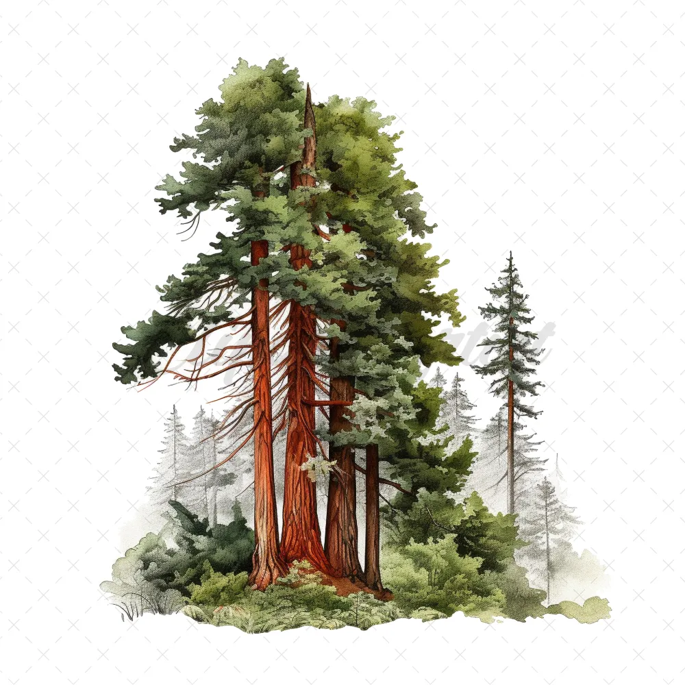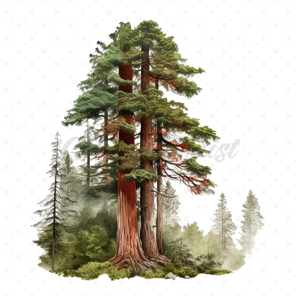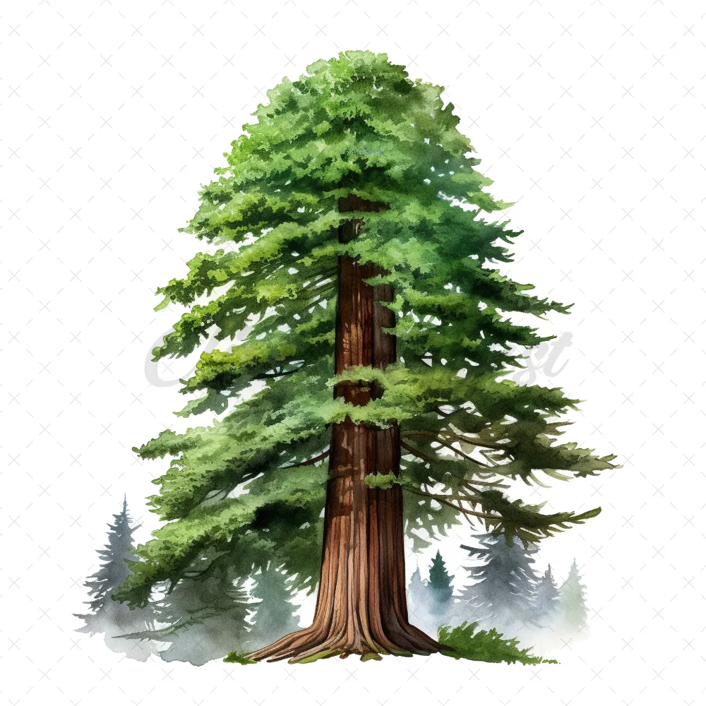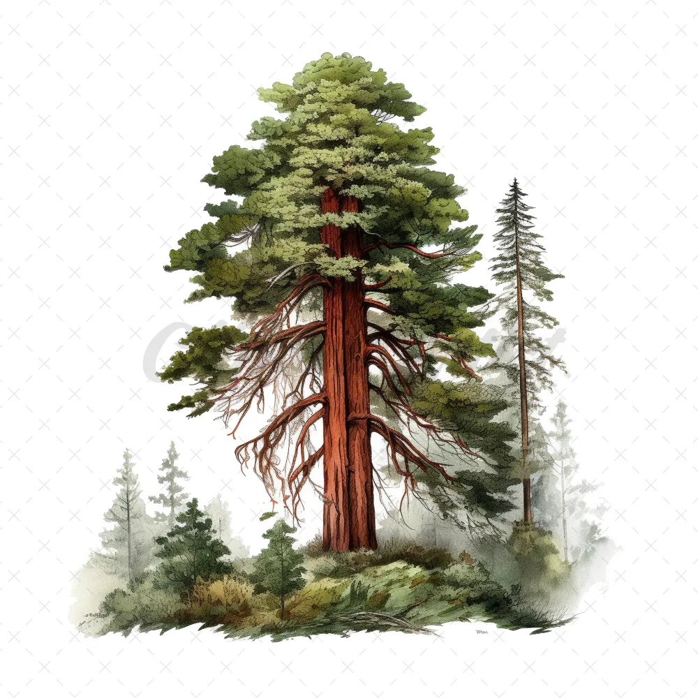 23 High-Quality Redwood Trees Clipart – Redwood trees digital watercolor JPG instant download for commercial use – Digital download