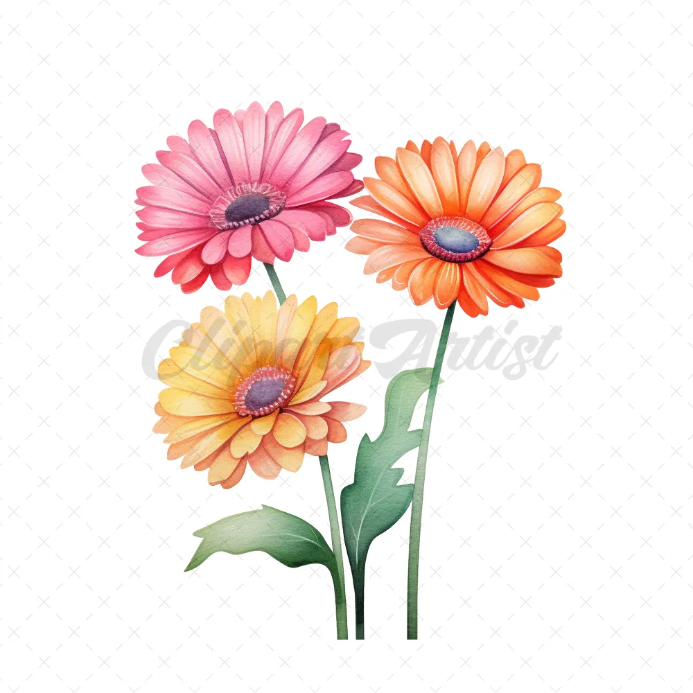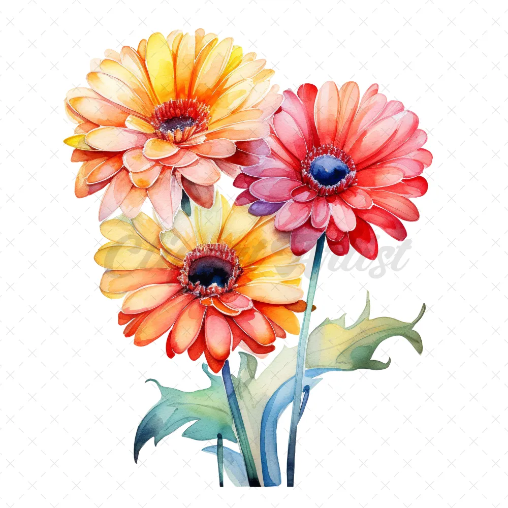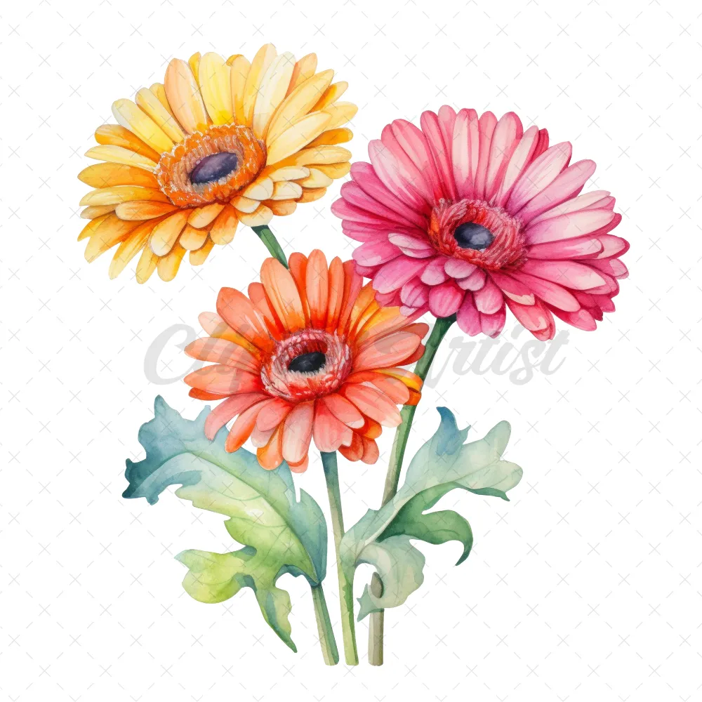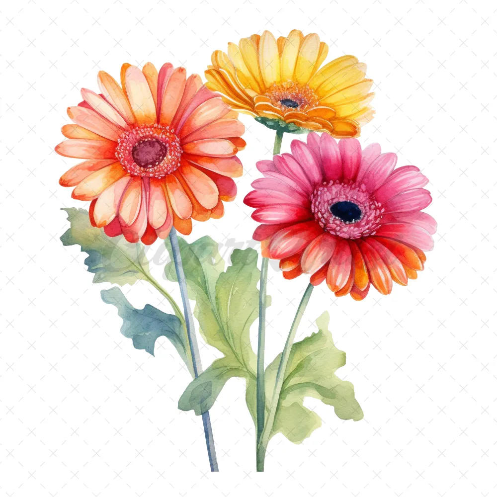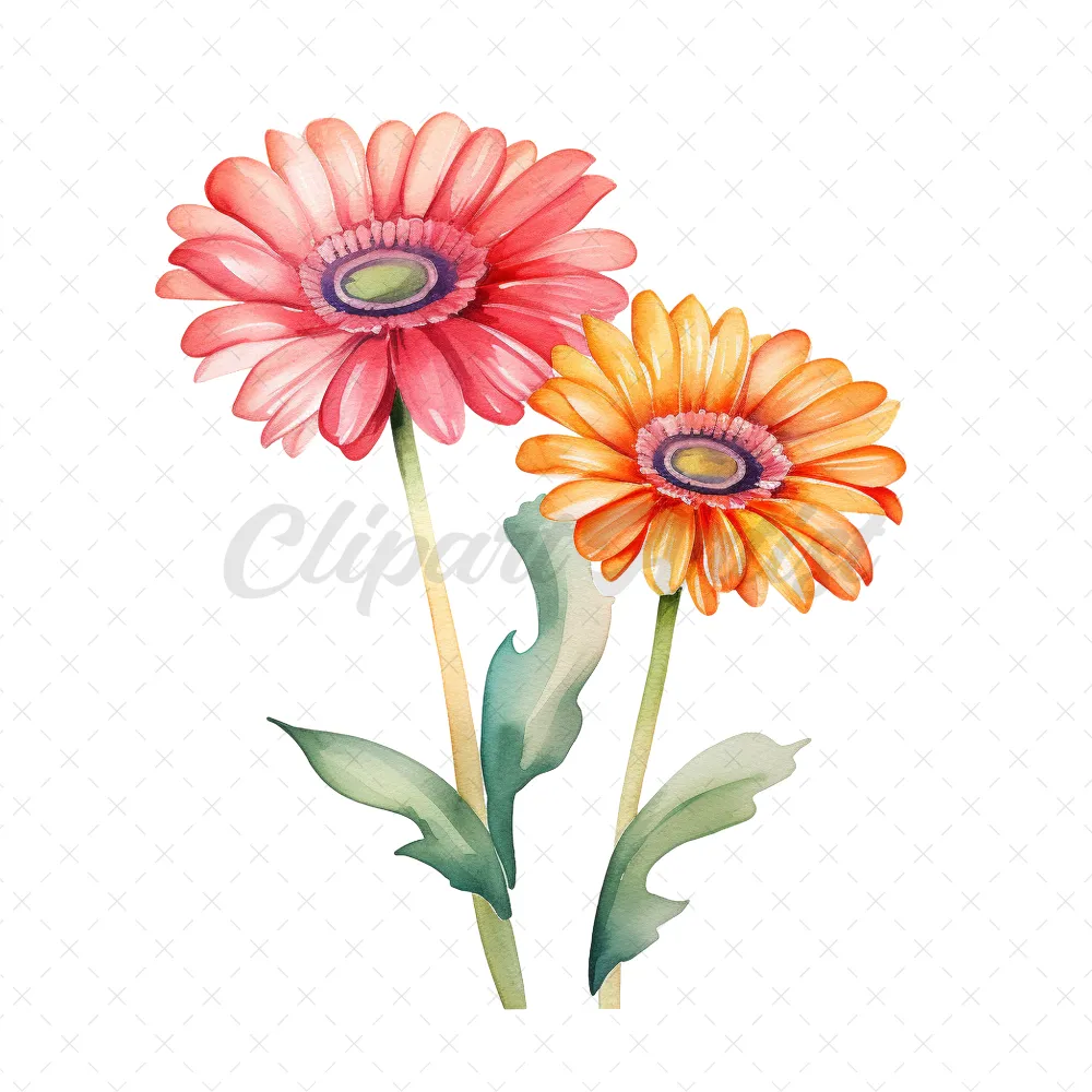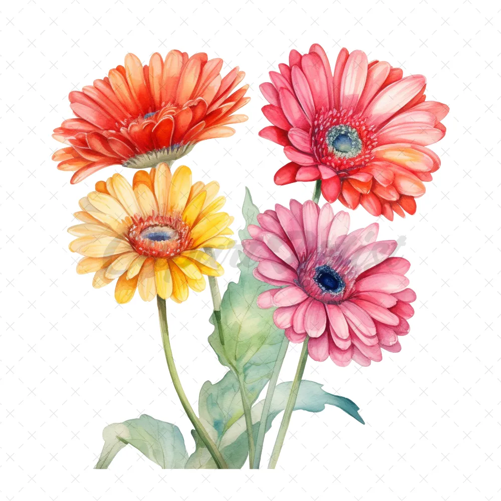 24 High-Quality Colorful Gerbera Clipart – Colorful gerbera digital watercolor JPG instant download for commercial use – Digital download