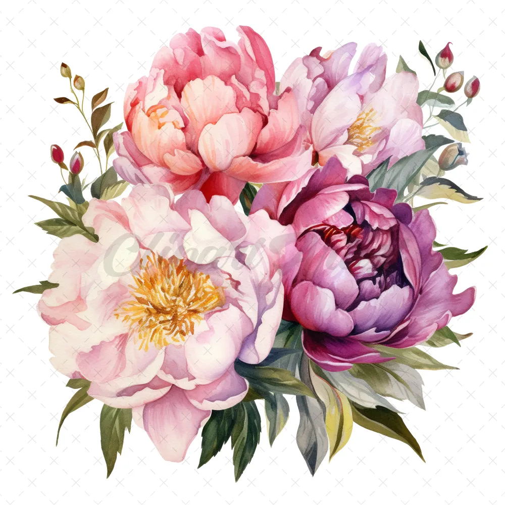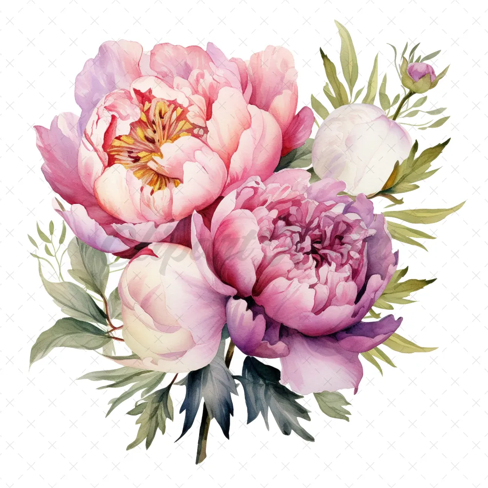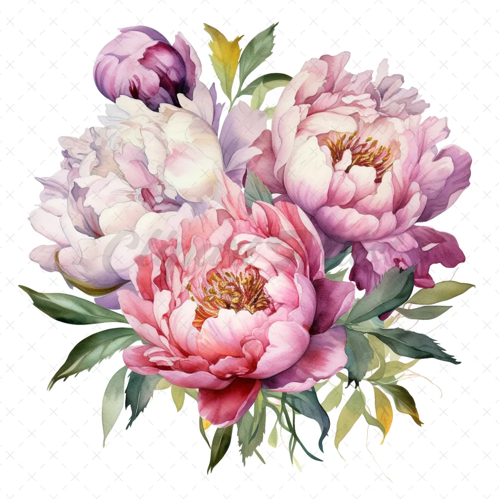 24 High-Quality Iridescent Peony Clipart – Iridescent peony digital watercolor JPG instant download for commercial use – Digital download