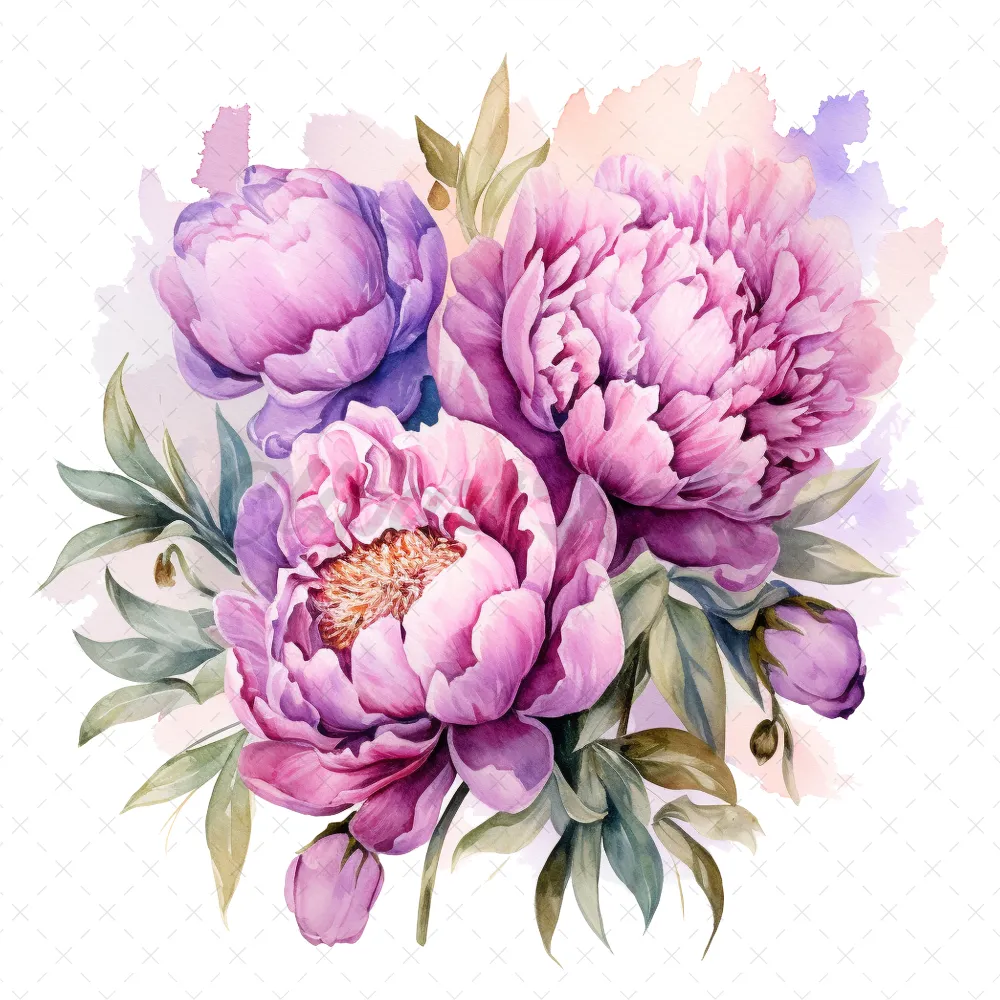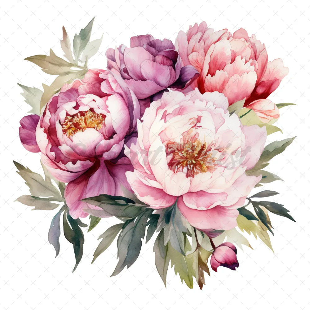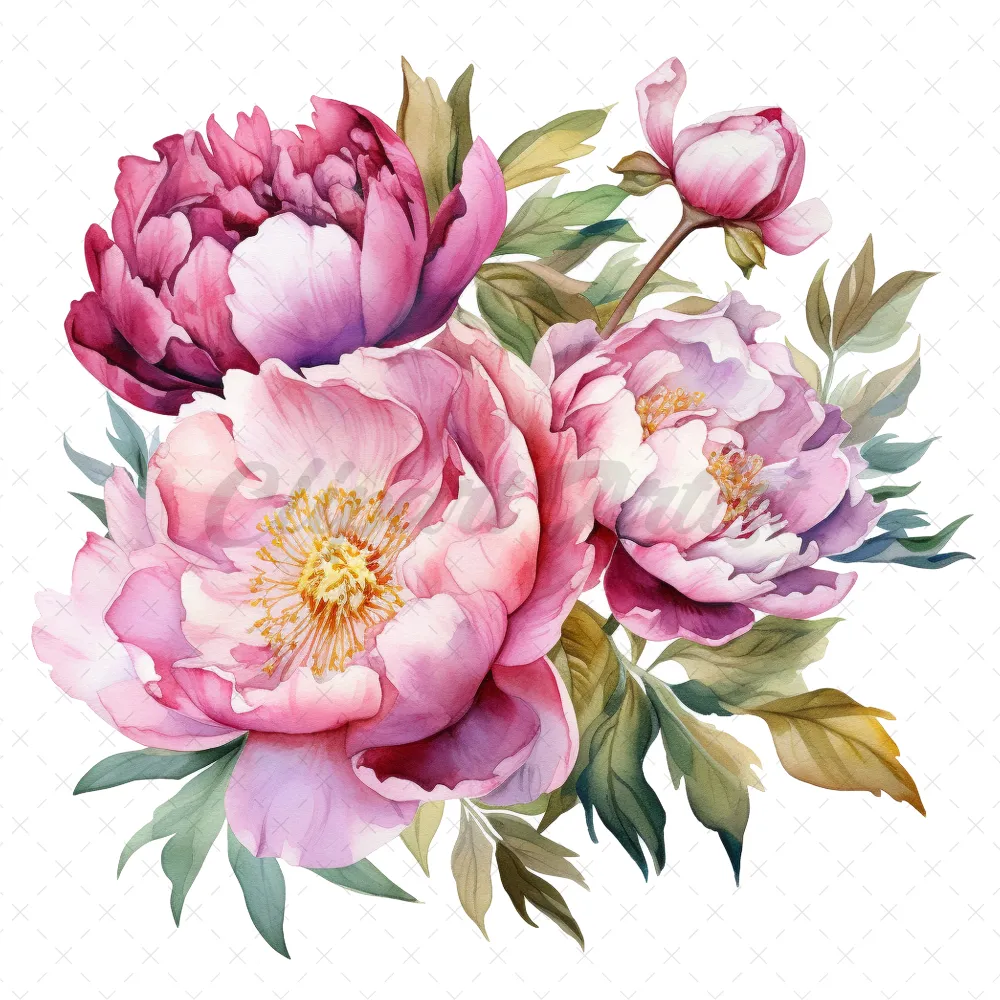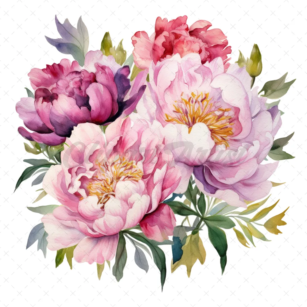 24 High-Quality Iridescent Peony Clipart – Iridescent peony digital watercolor JPG instant download for commercial use – Digital download