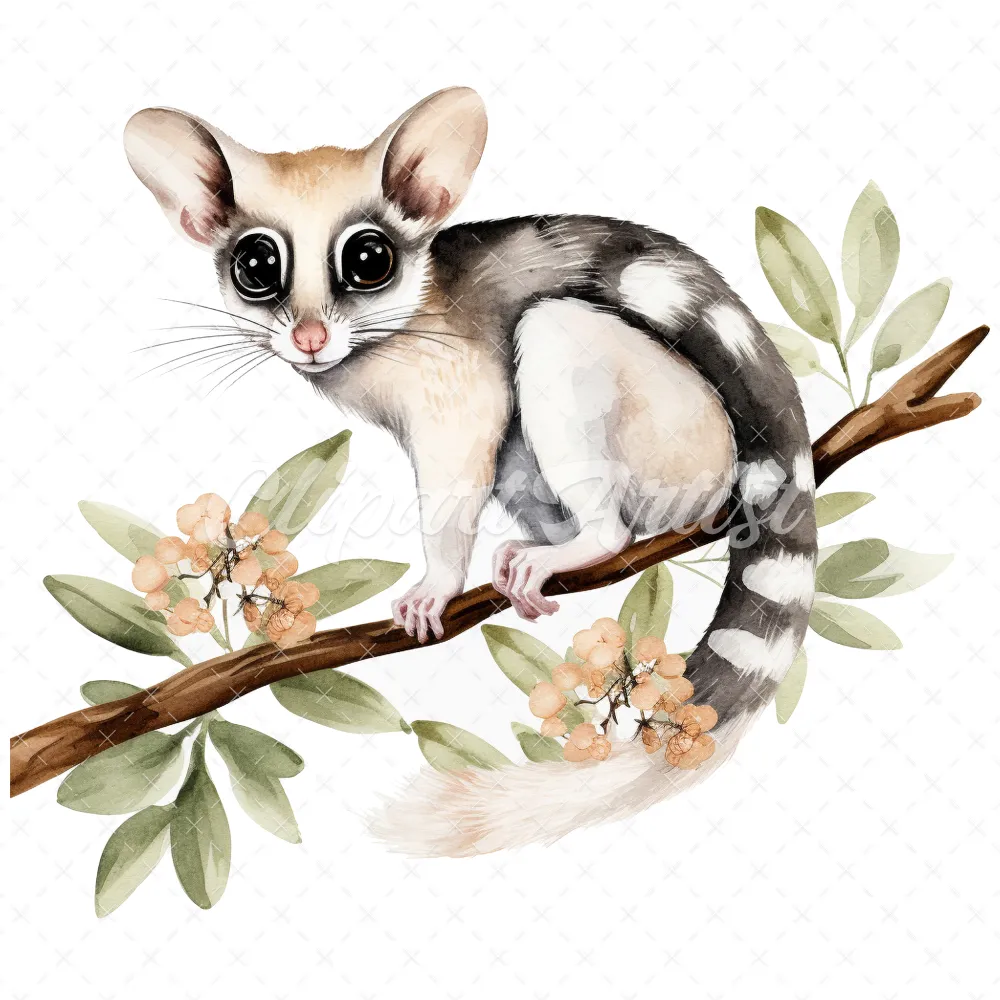 24 High-Quality Sugar Gliders Clipart – Sugar gliders digital watercolor JPG instant download for commercial use – Digital download
