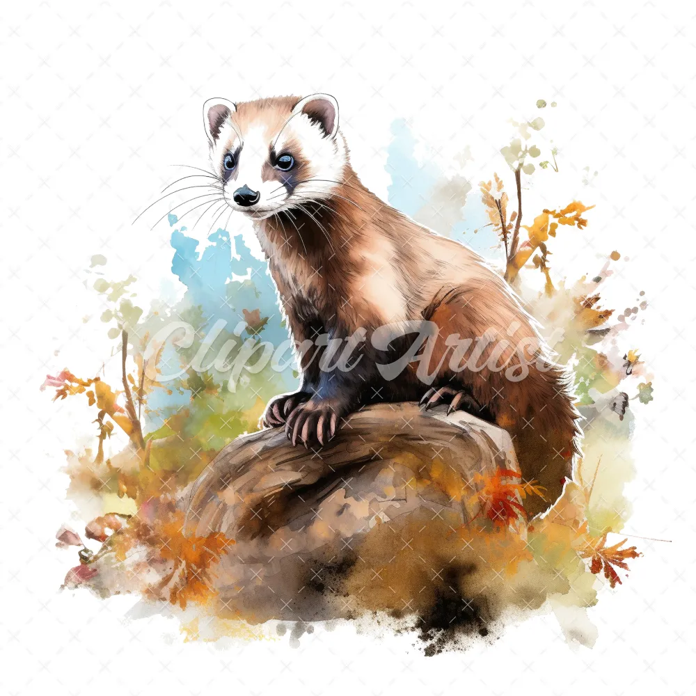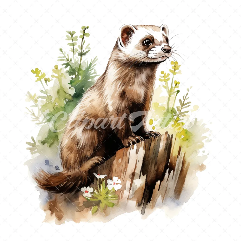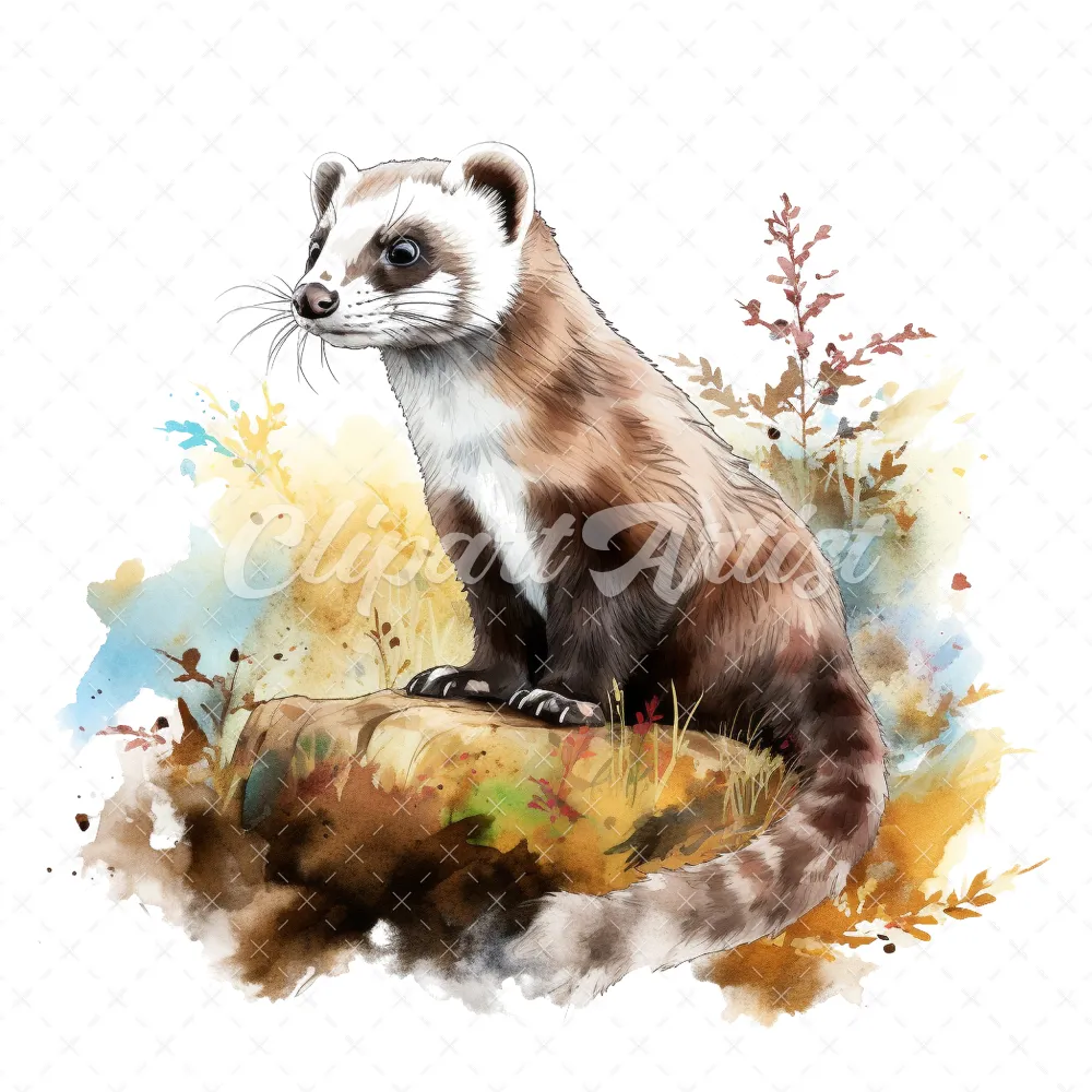 28 High-Quality Ferrets Clipart – Ferrets digital watercolor JPG instant download for commercial use – Digital download