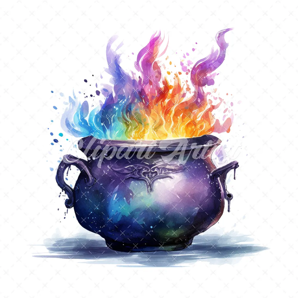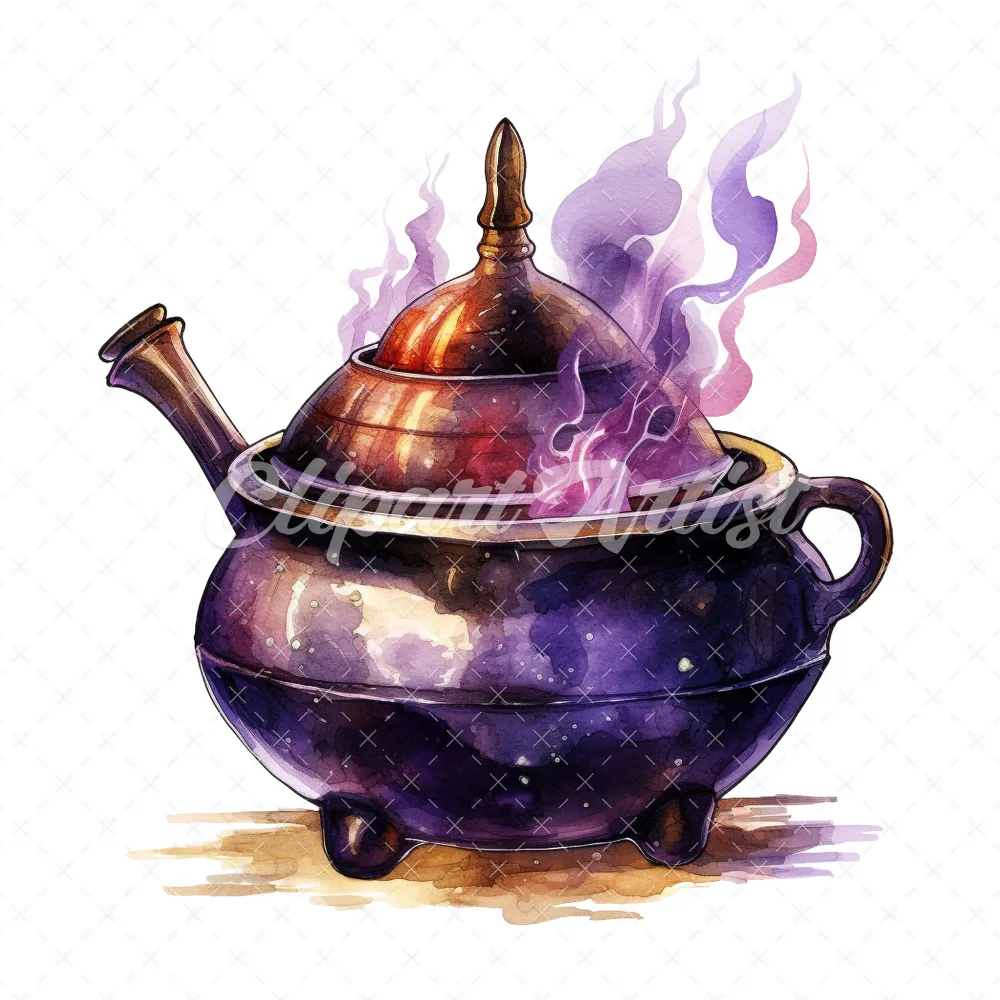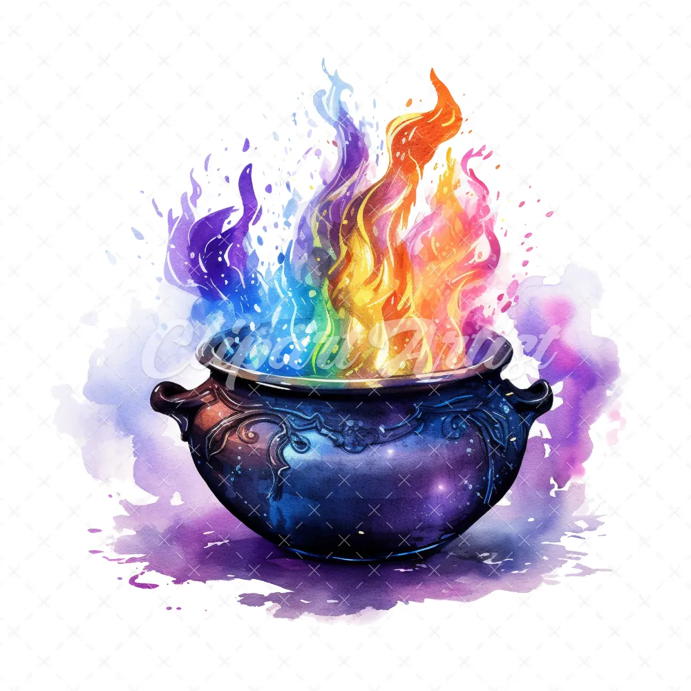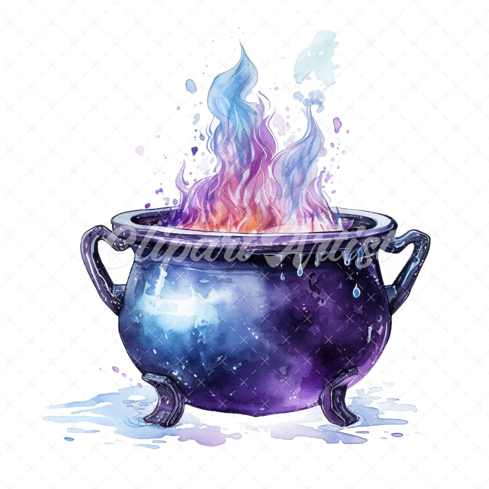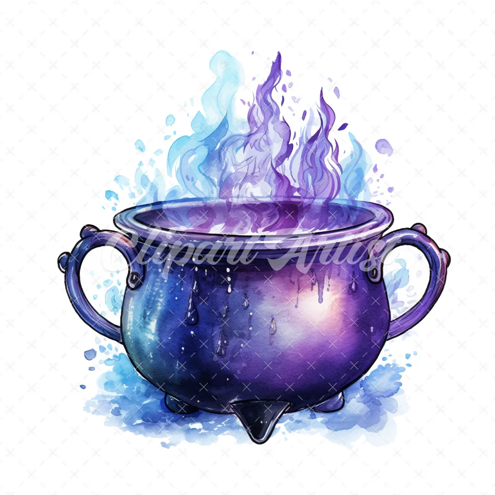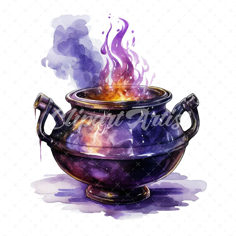 28 High-Quality Wizard Cauldrons Clipart – Wizard cauldrons digital watercolor JPG instant download for commercial use – Digital download