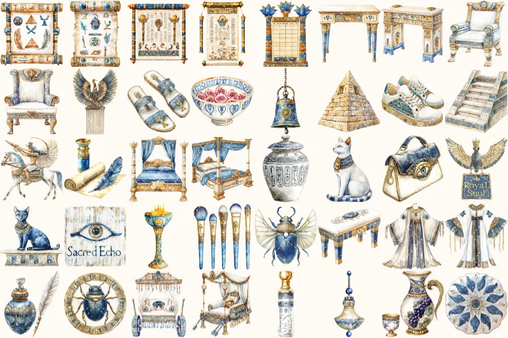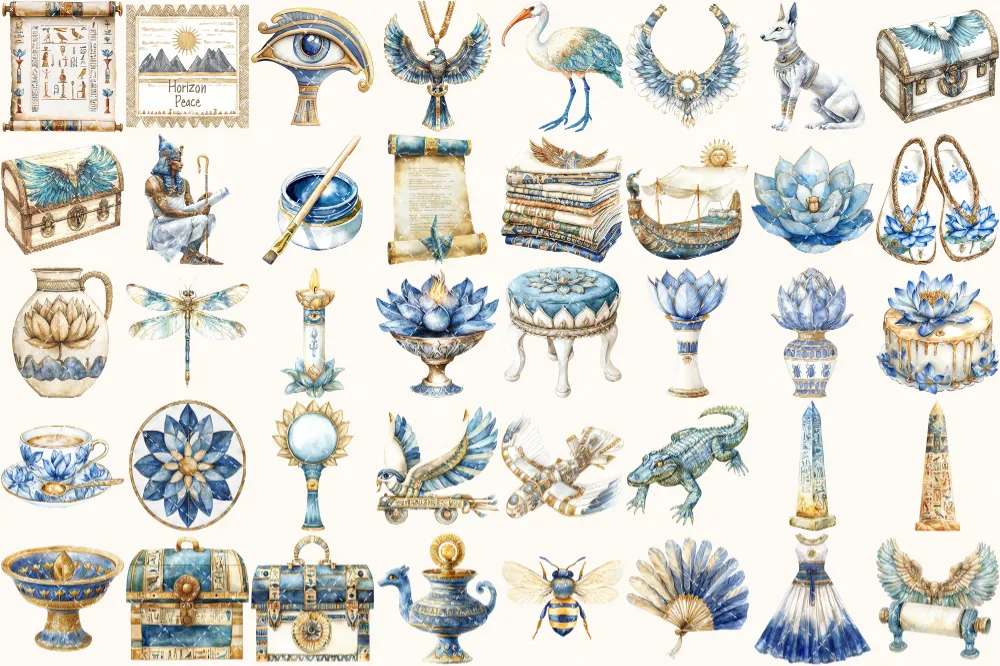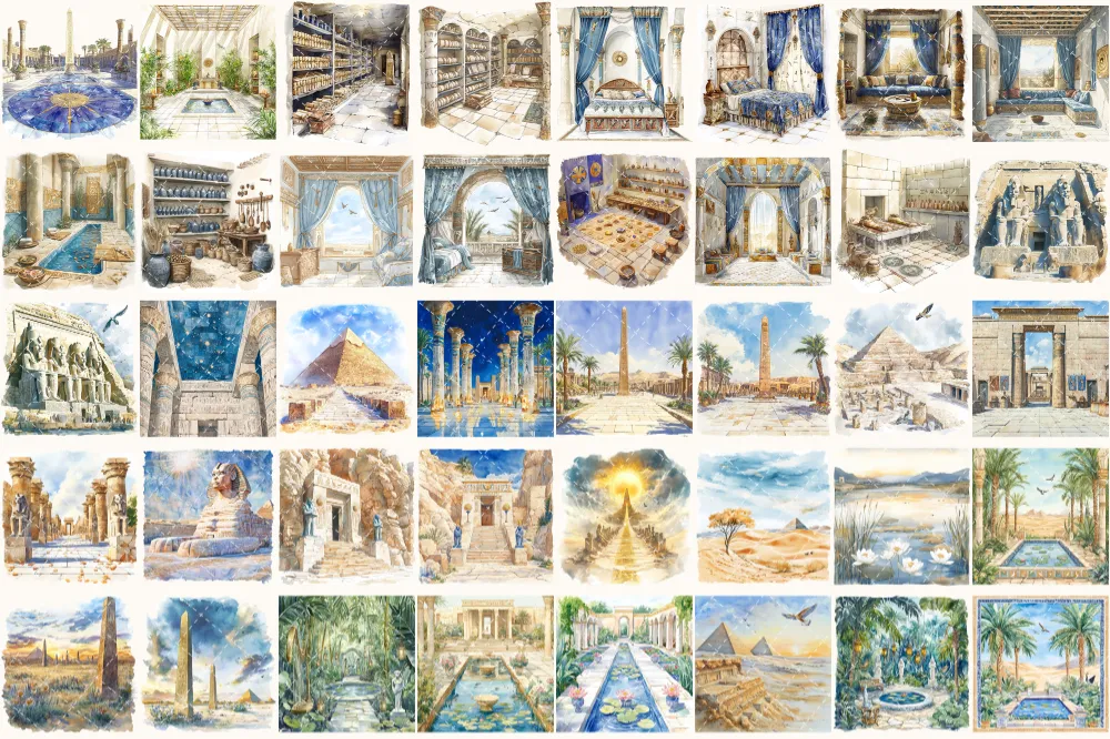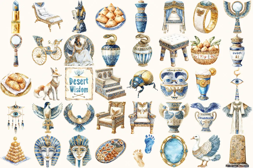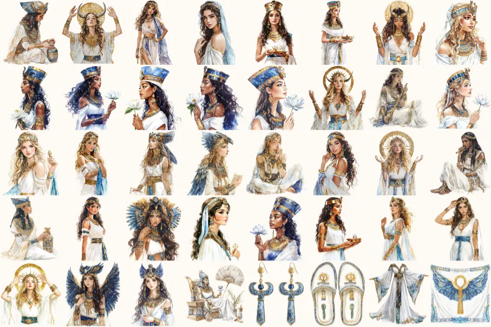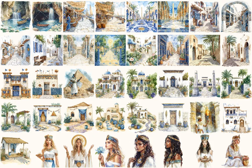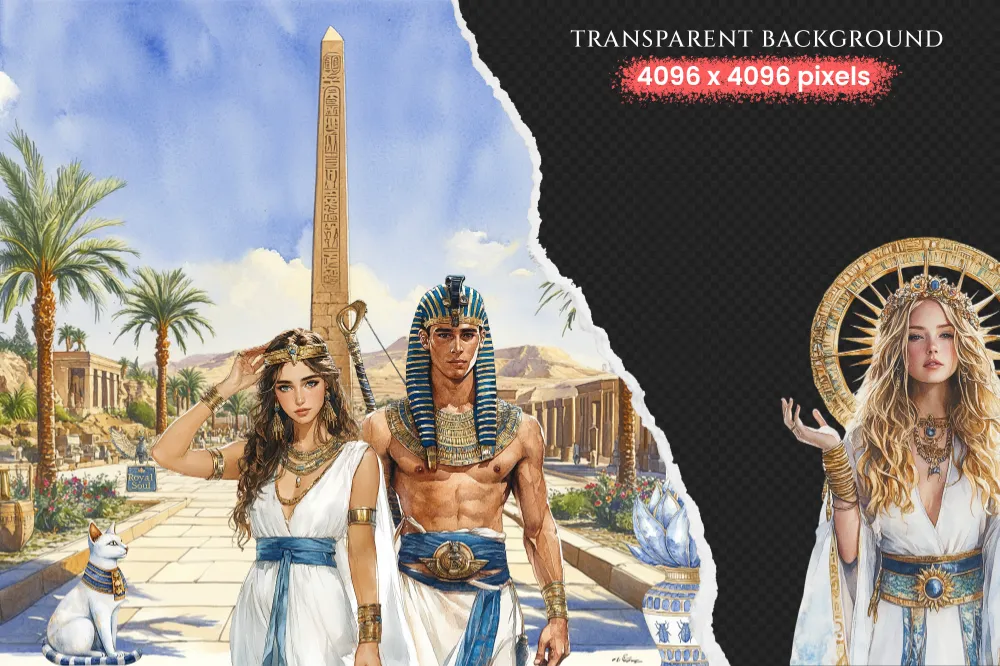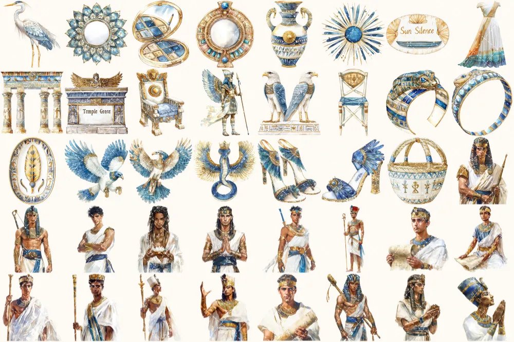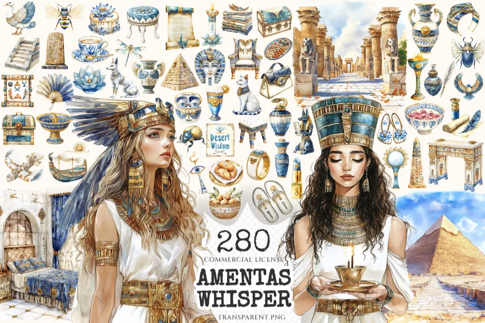 Amentas Whisper Watercolor Clipart Set – 275+ transparent PNG, Ancient egypt illustrations, Pharaohs art, Commercial use, Digital download