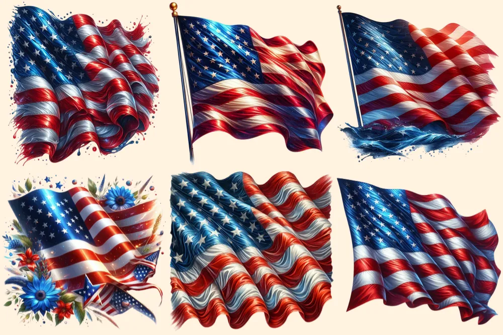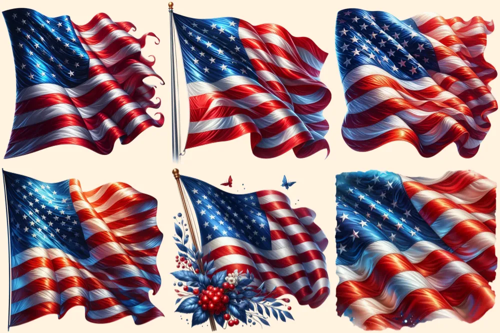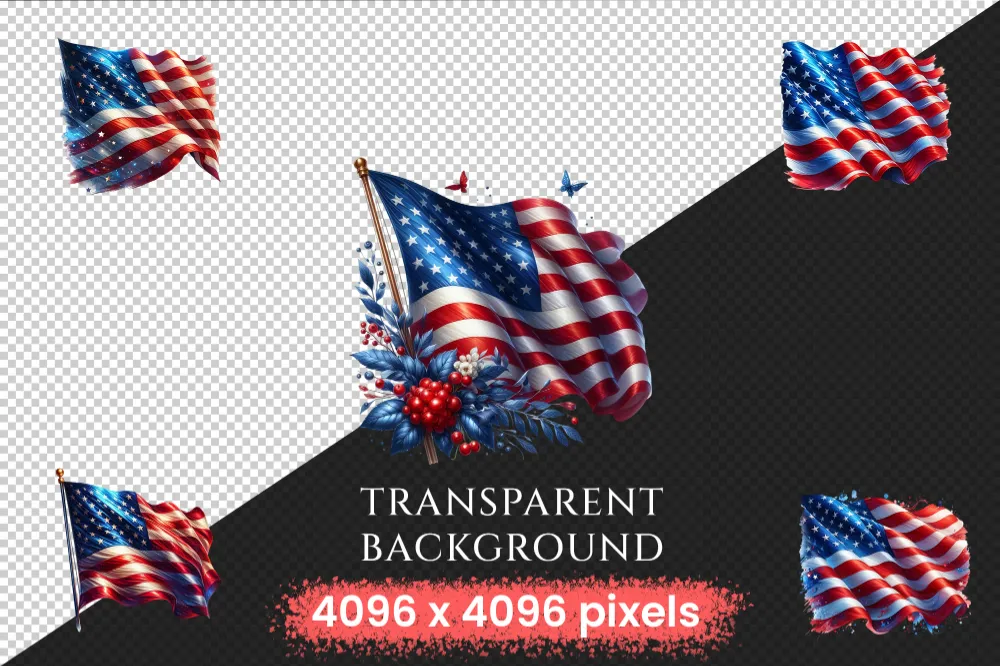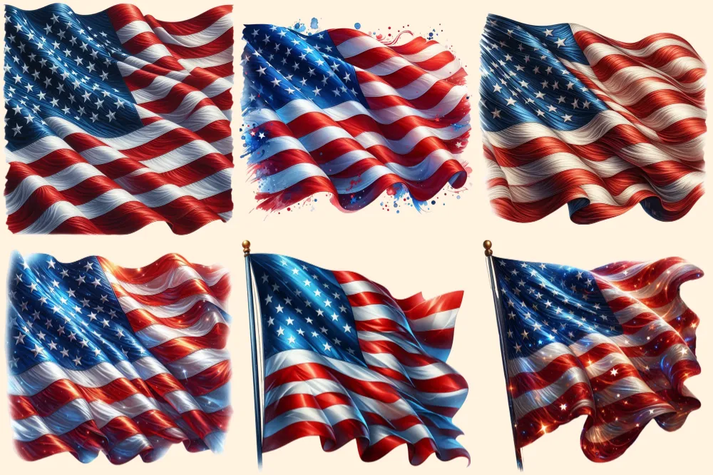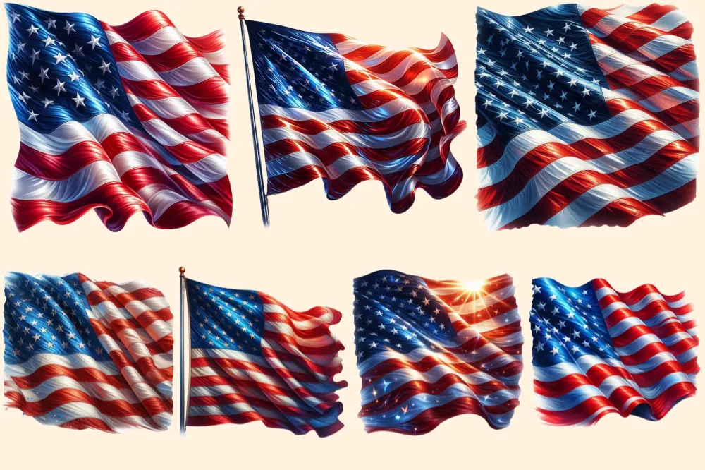 American Flags PNG Clipart Collection – 31 PNG, USA flag graphics, Patriotic 4th of july printables, Commercial use, Digital download