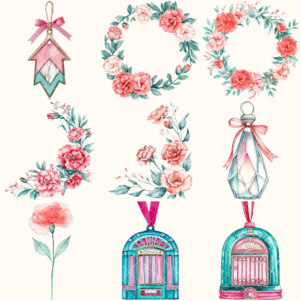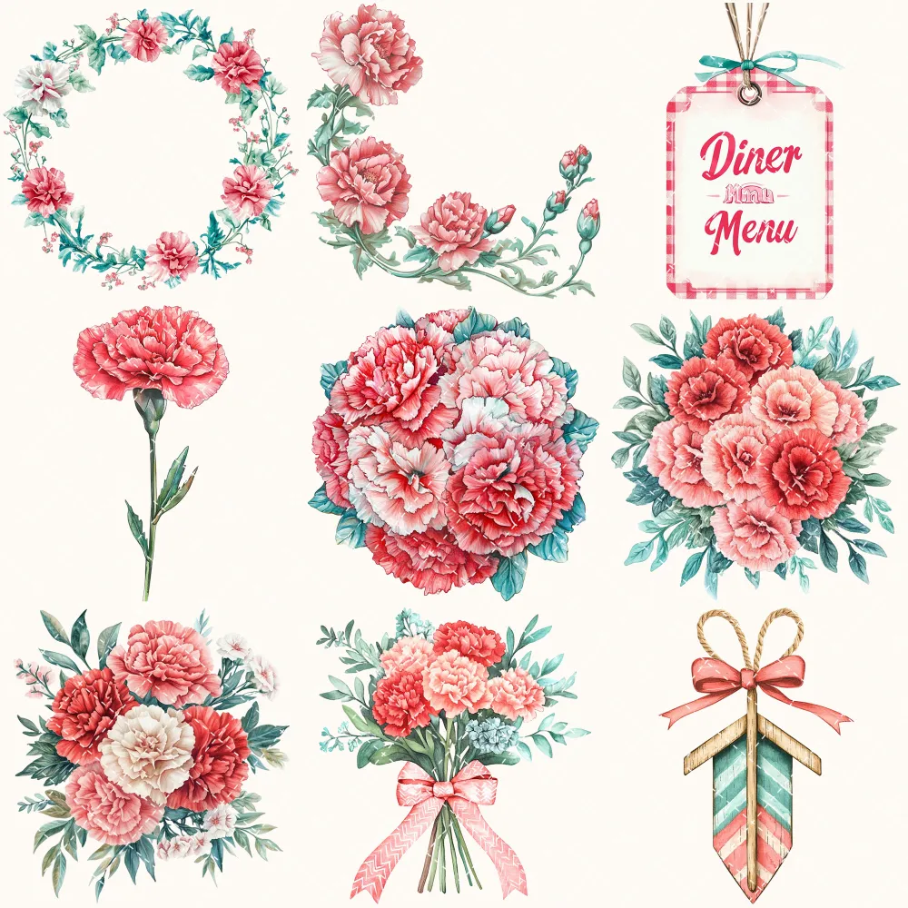 American Neon Diner Floral Arrangements, Carnation Floral PNG, Carnation Bouquet, Flowers, Decor, Ornaments, Flower Art, Digital download