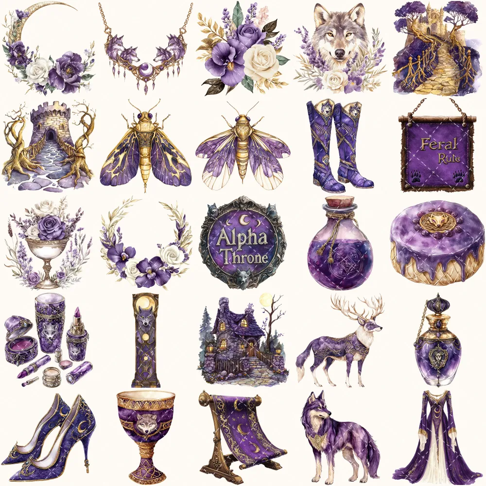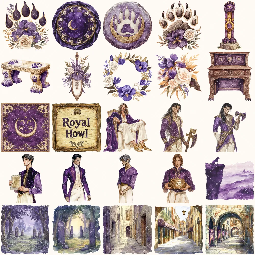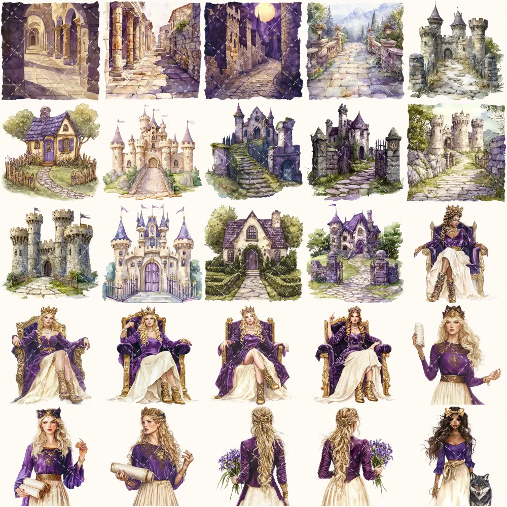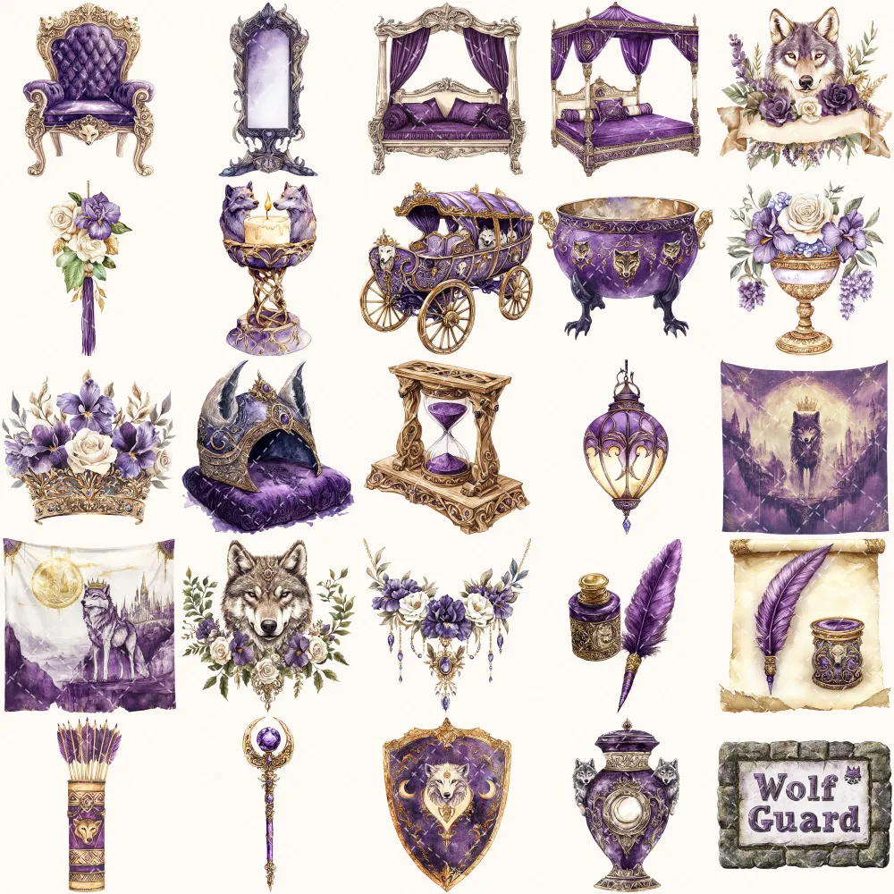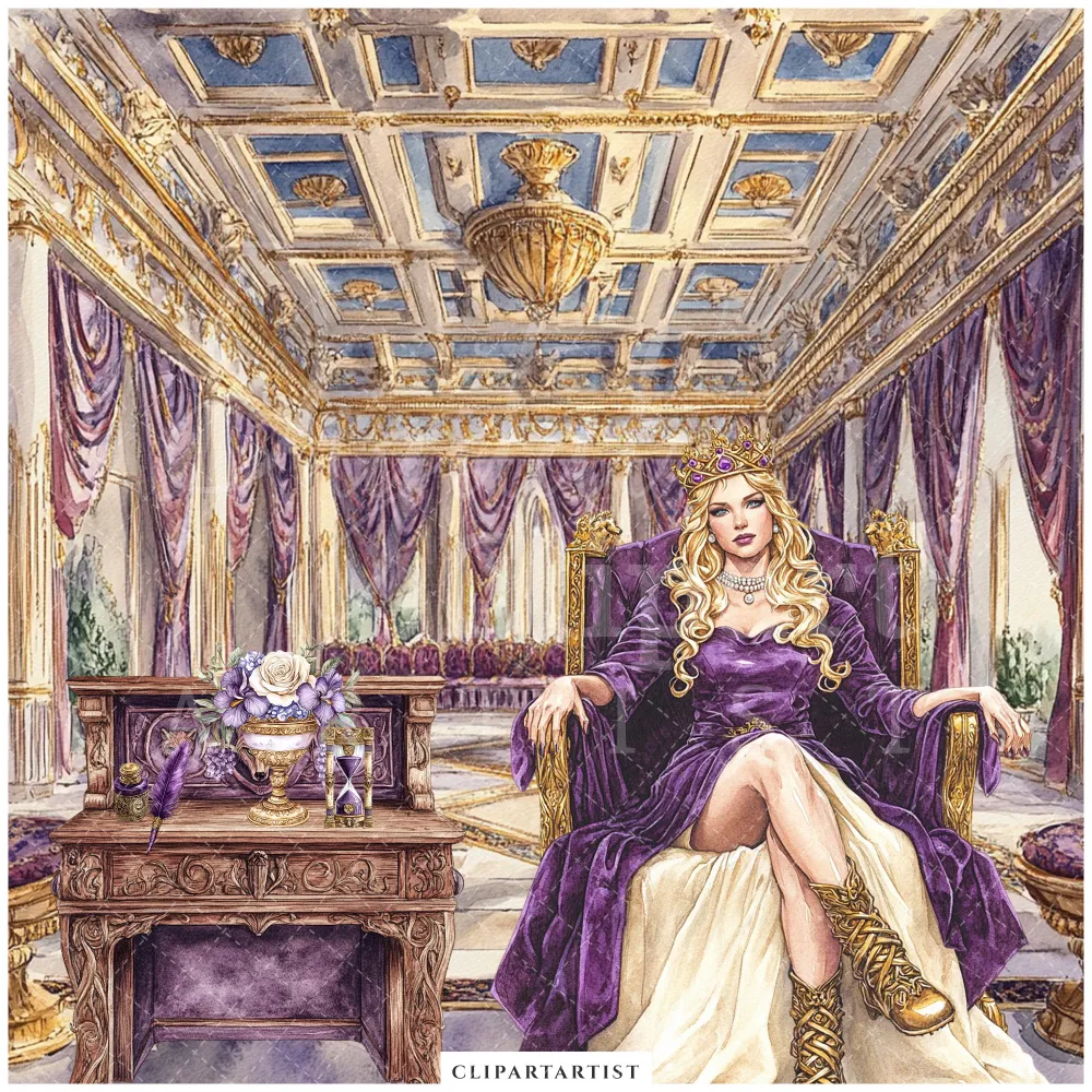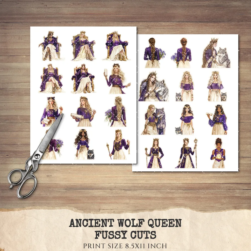 Ancient Wolf Queen Clipart Set – Regal woman Illustrations, lost kingdom Graphics, Royal Purple, Throne, Crown, Dynasties, Digital download