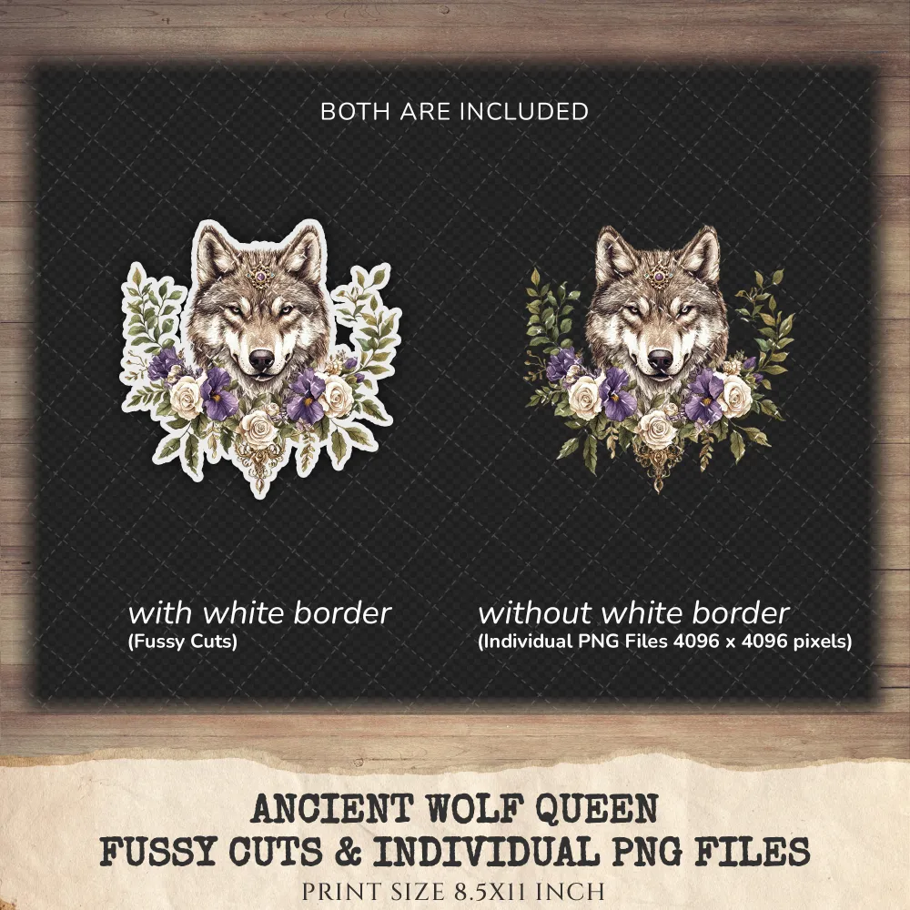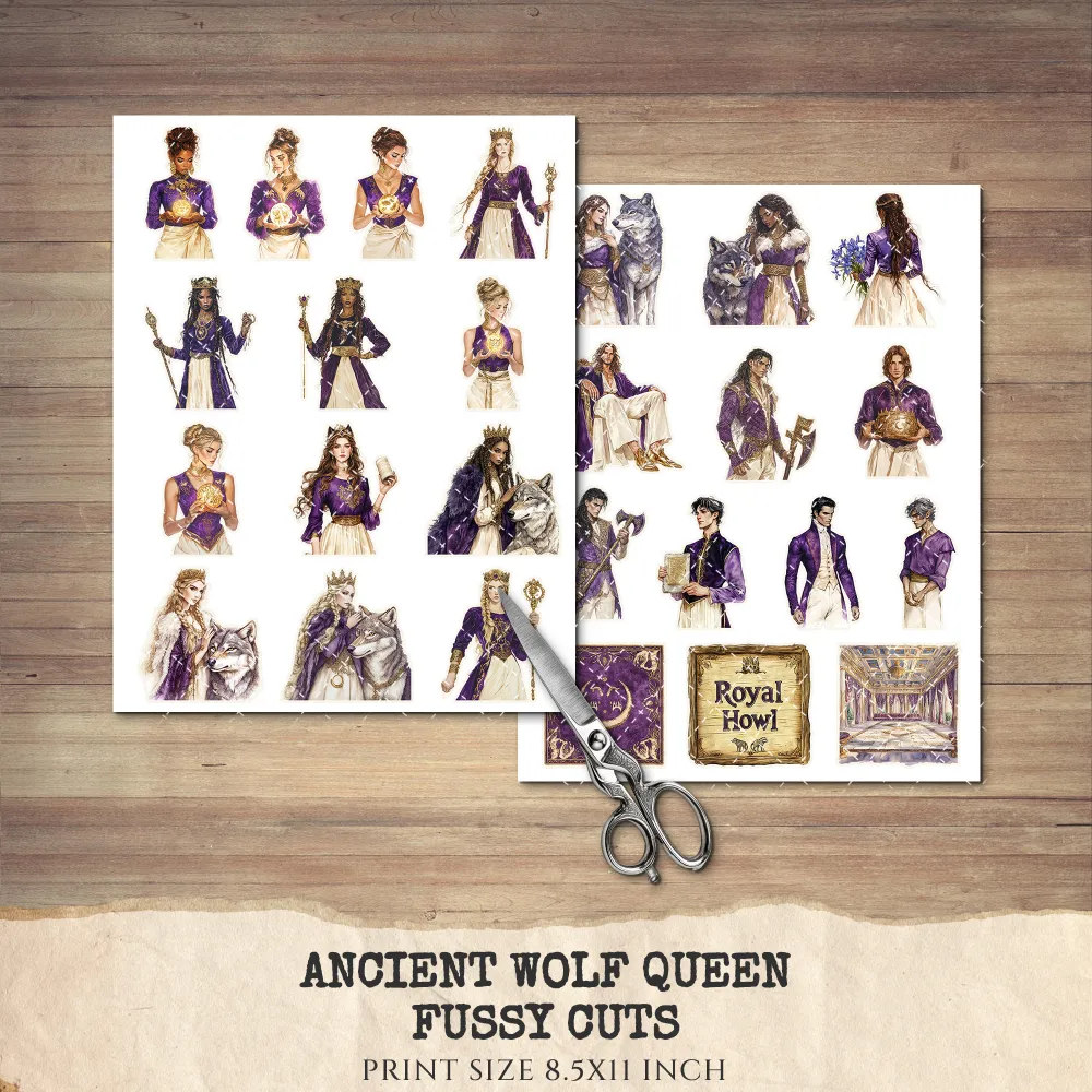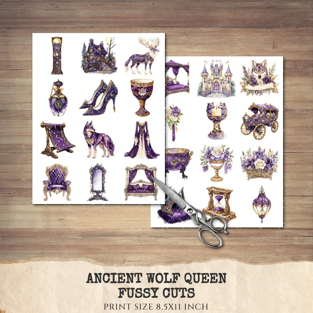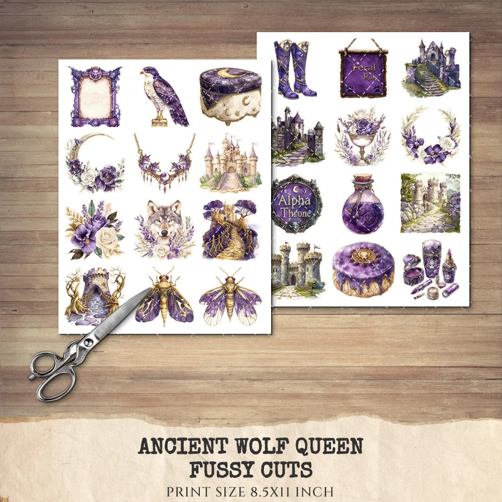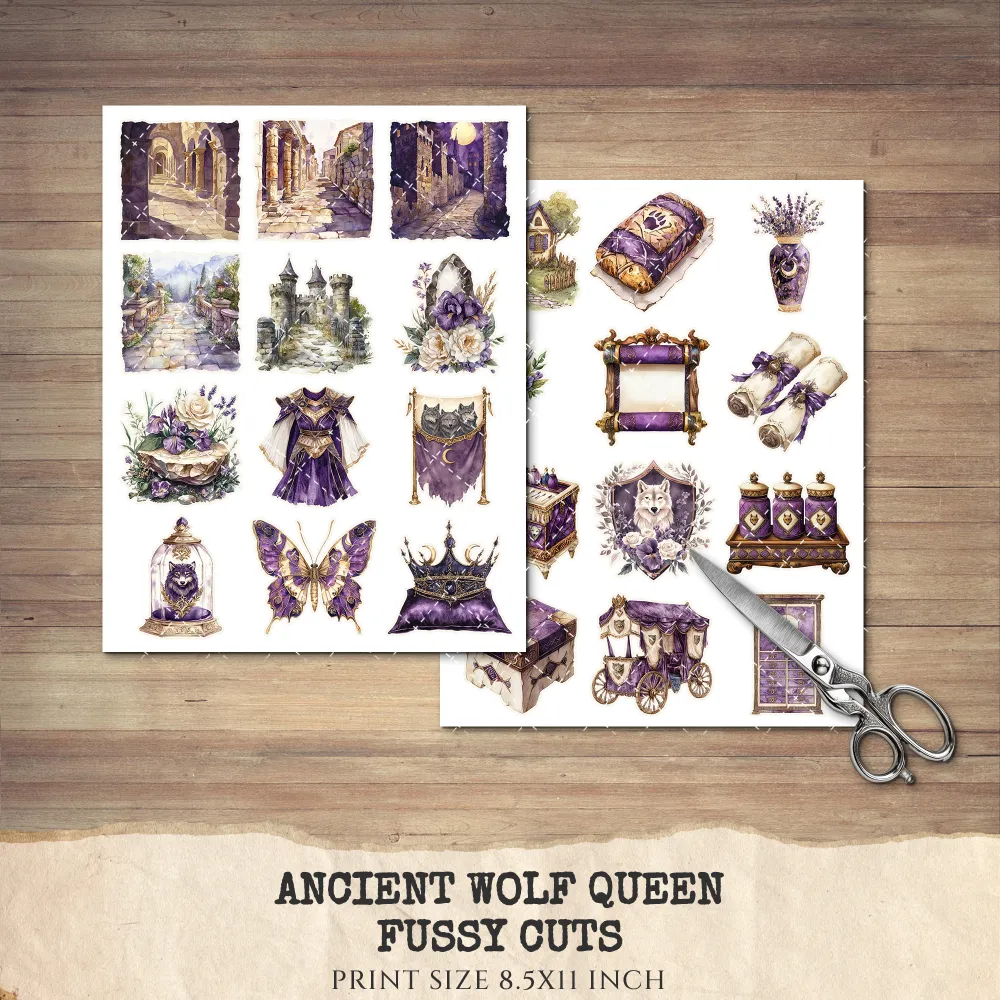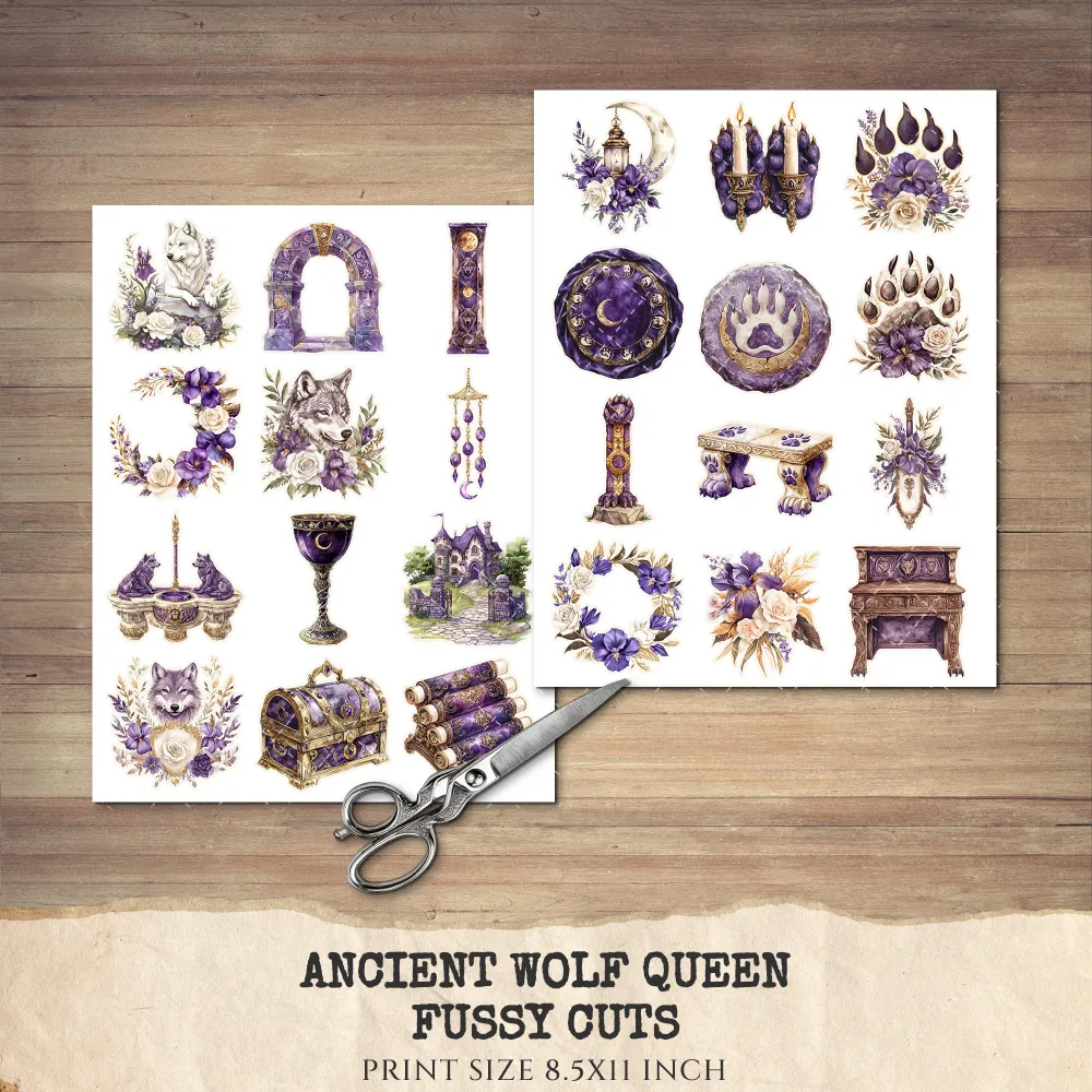1. Ancient Wolf Queen Junk Journal Ephemera & Folio Kit: