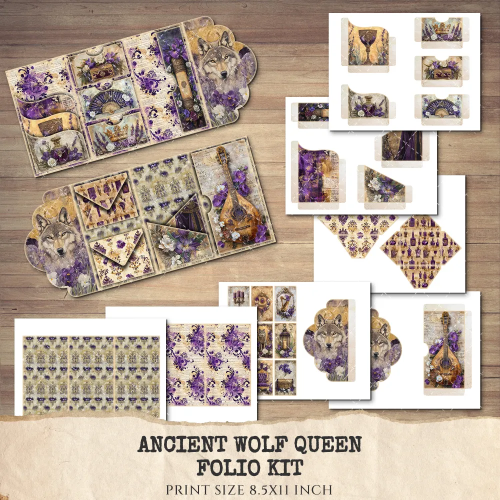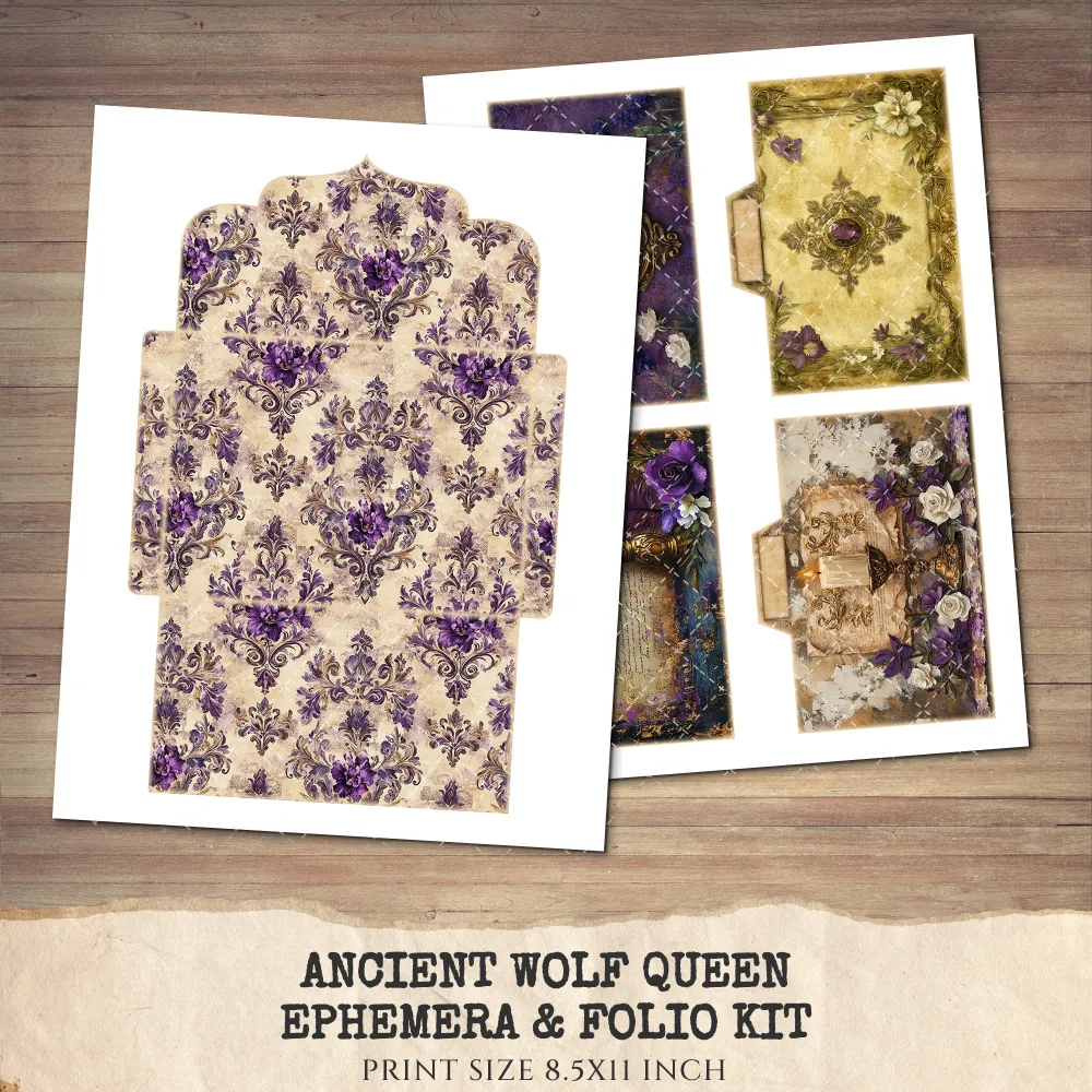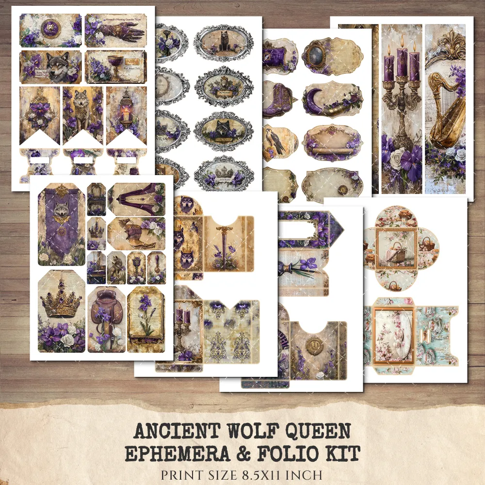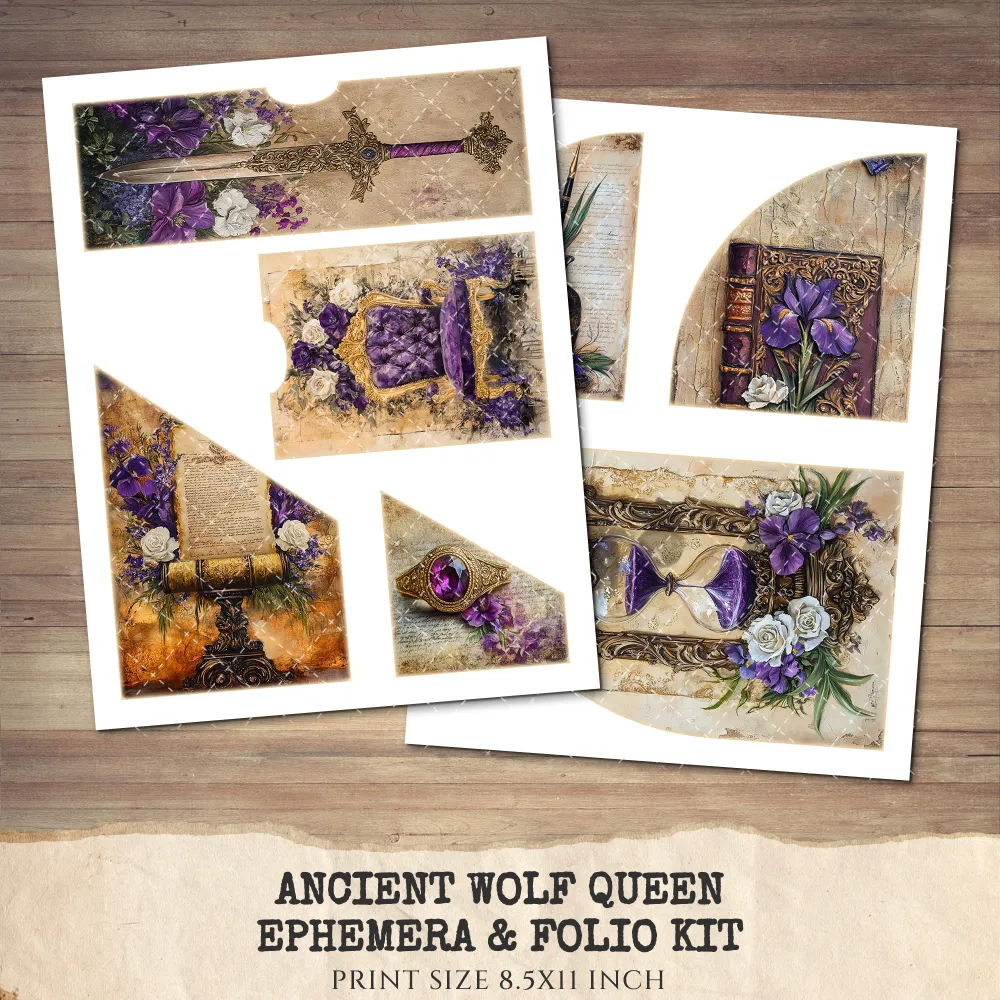 Ancient Wolf Queen Ephemera & Folio Kit – Lost Kingdom, Regal Woman Printables, Royal Purple, Throne, Crown, Kit, Digital Download
