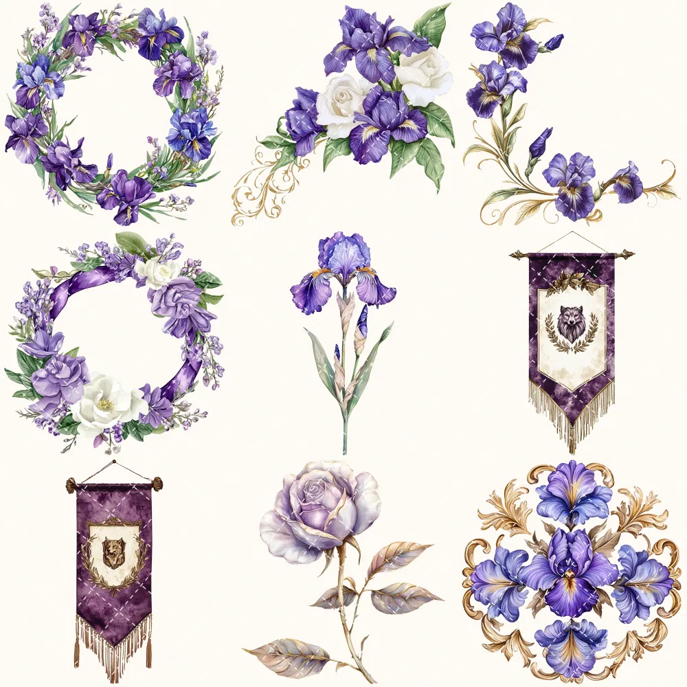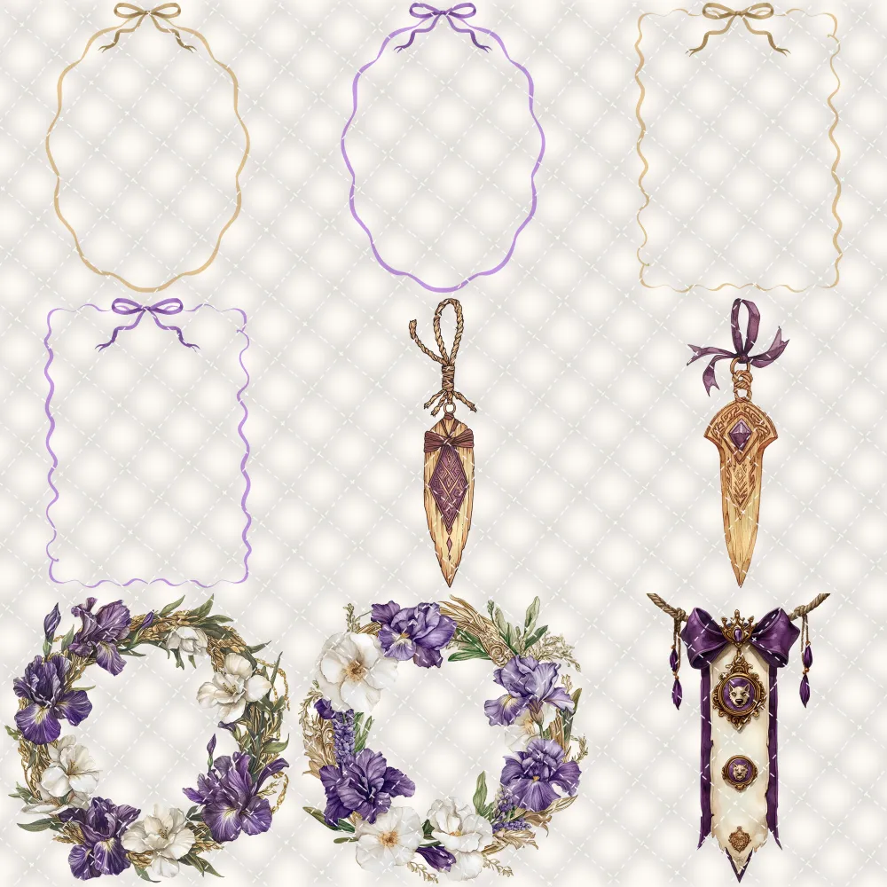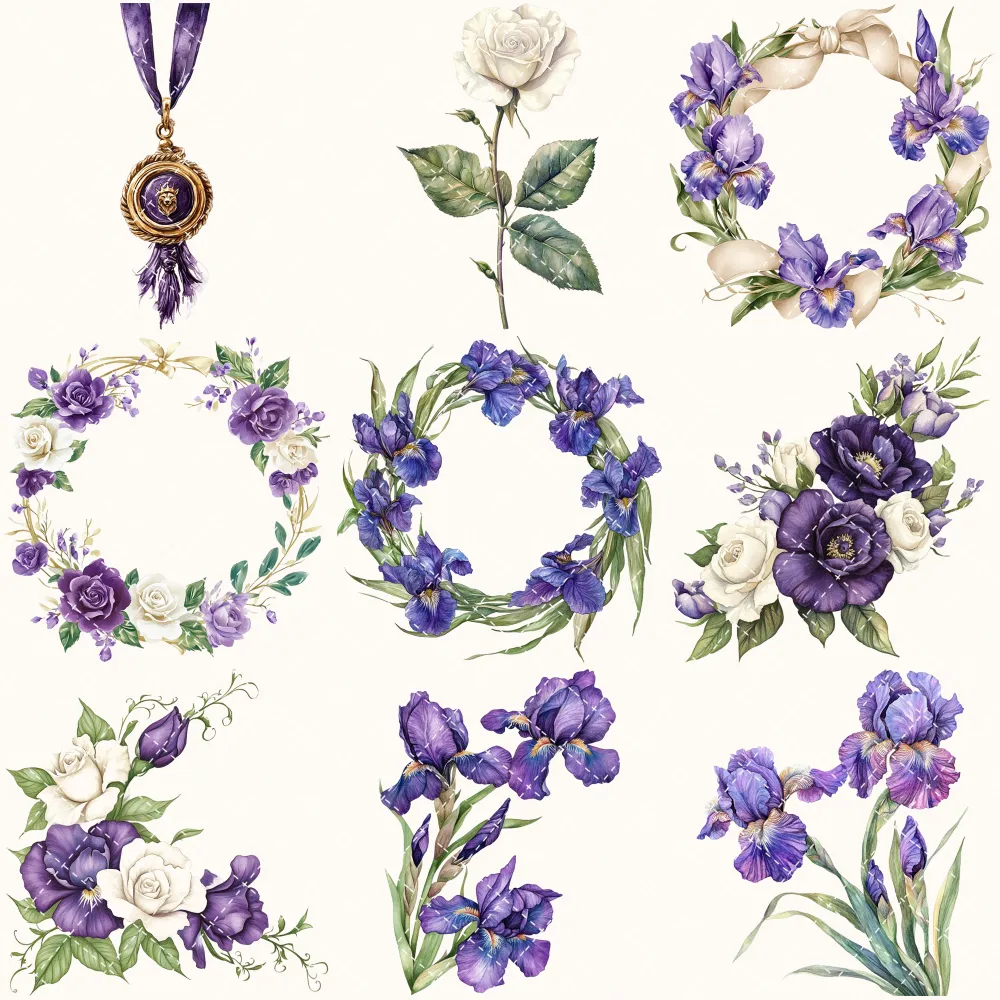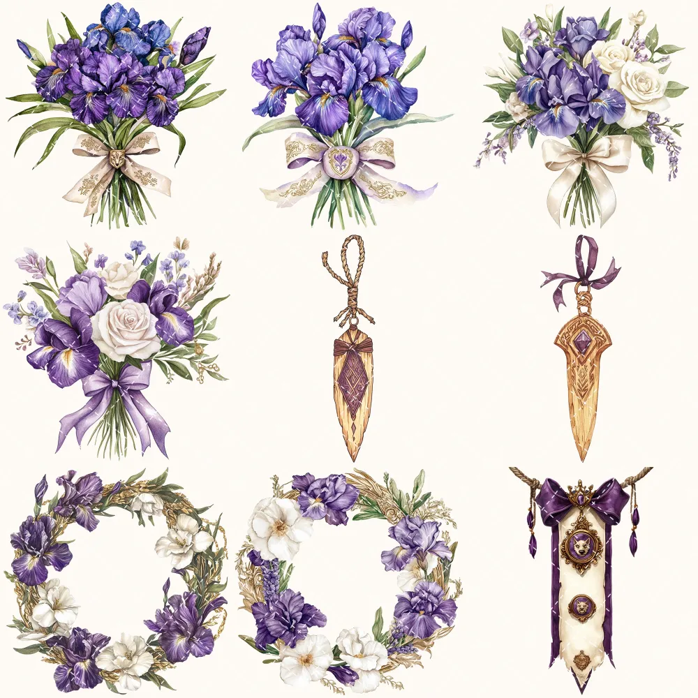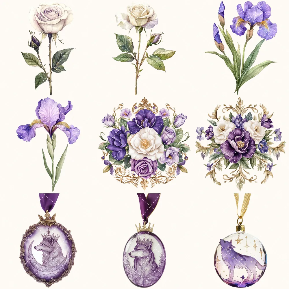 Ancient Wolf Queen Floral Arrangements, Purple Iris Floral PNG, White Rose Bouquet, Flower Art, Ancient Decor, Ornaments, Digital download