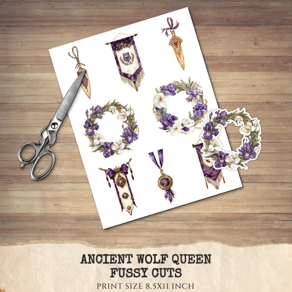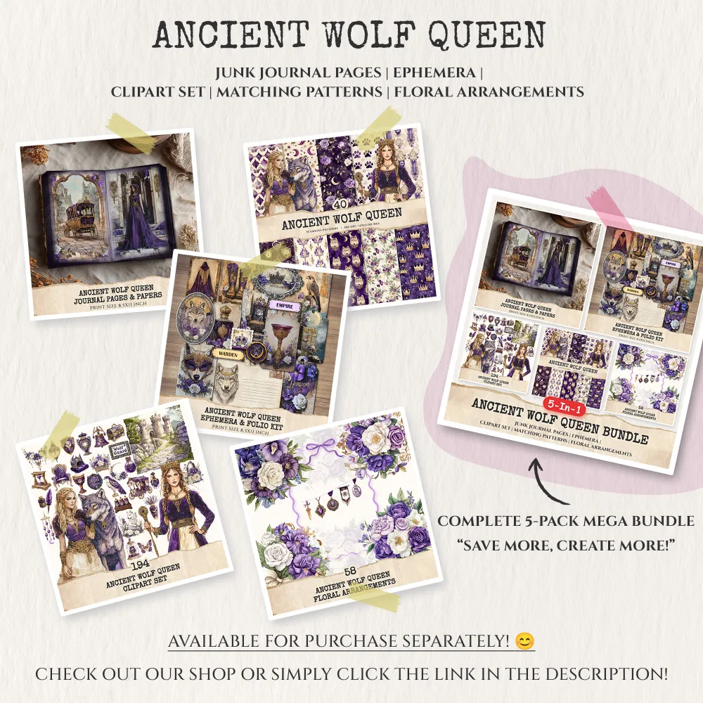 1. Ancient Wolf Queen Junk Journal Ephemera & Folio Kit: