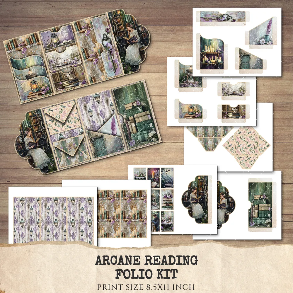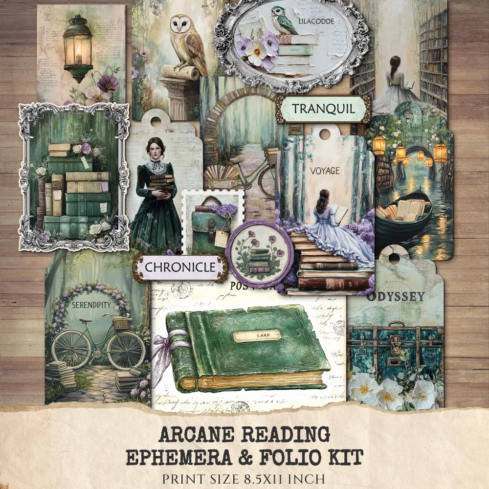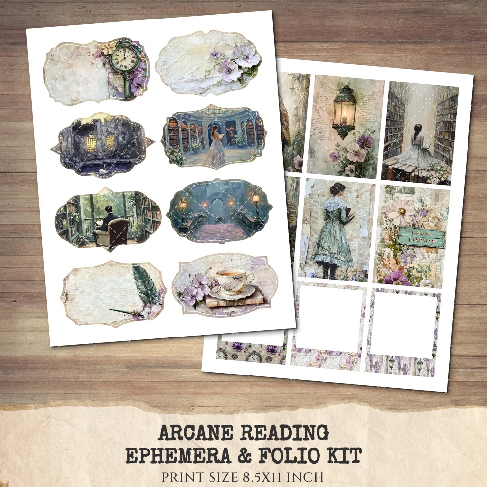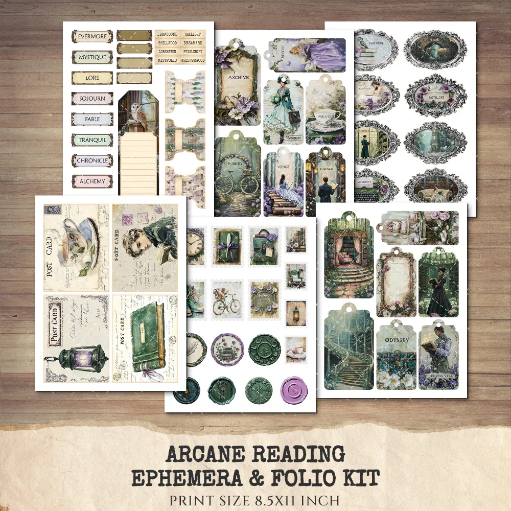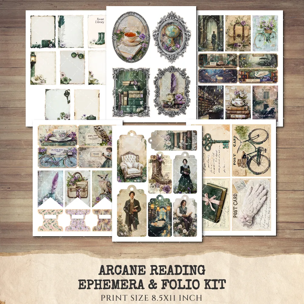 Arcane Reading Ephemera & Folio Kit – Enchanted Forest Library, Magical Book Printables, Witchy Library, Floral Tags, Kits, Digital Download