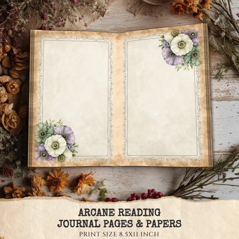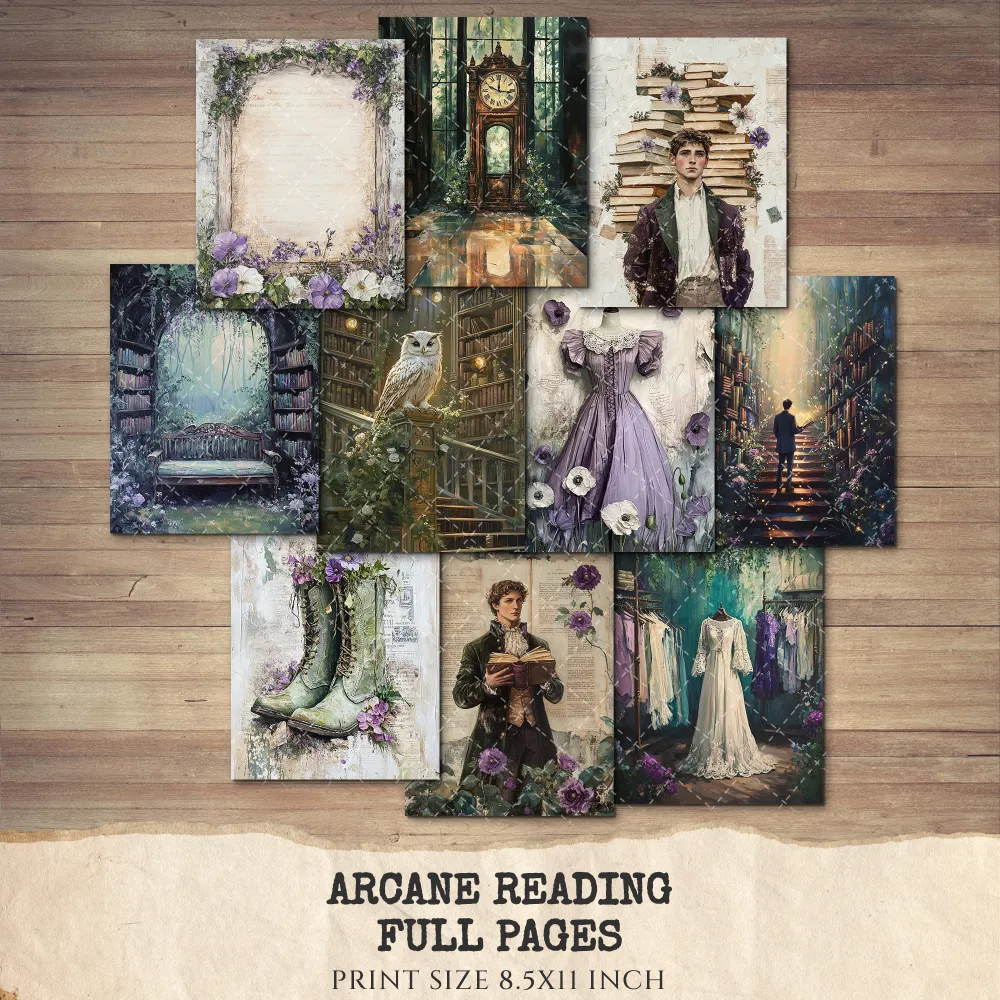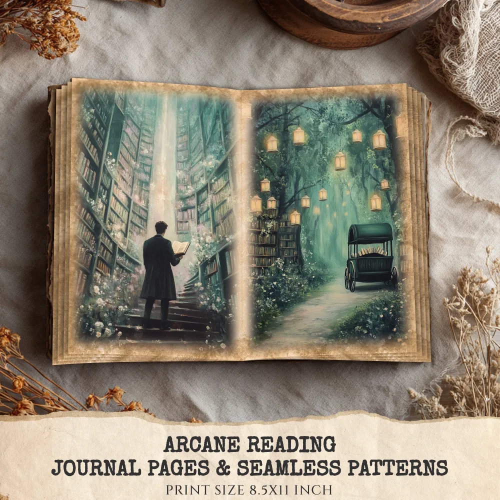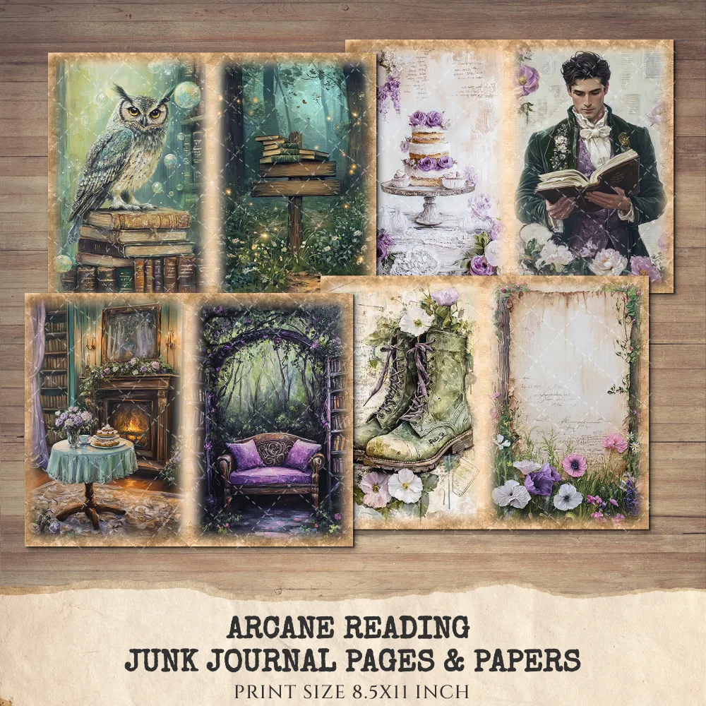 Arcane Reading Junk Journal Pages & Papers – Forest Library, Magical Book Printable, Fantasy Scrapbook, Enchanted, Floral, Digital Download