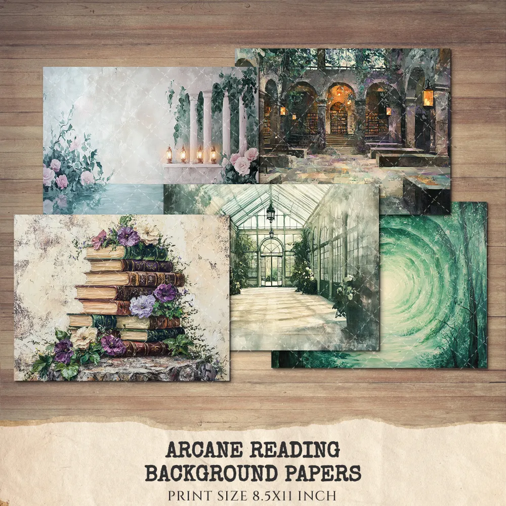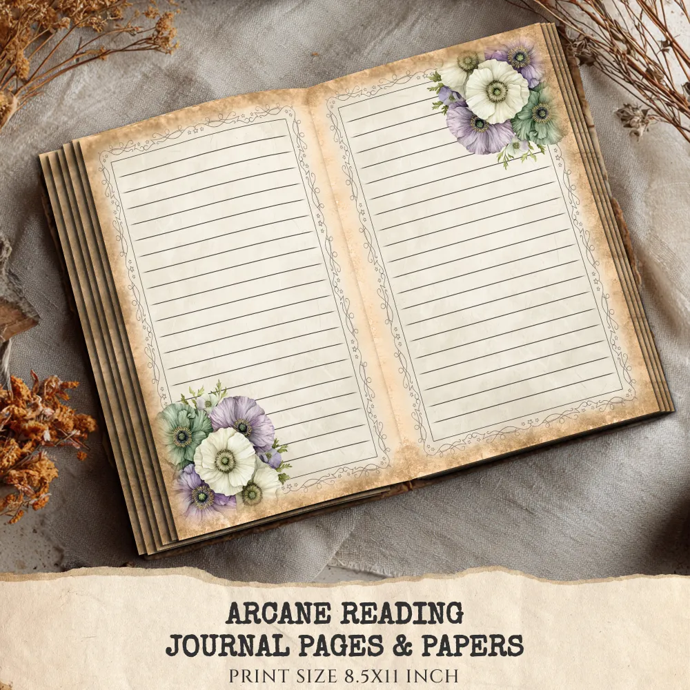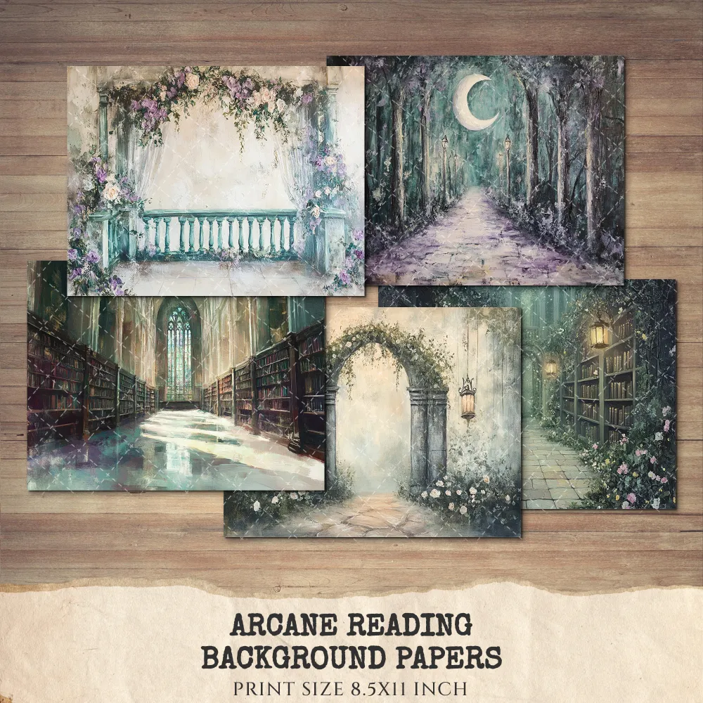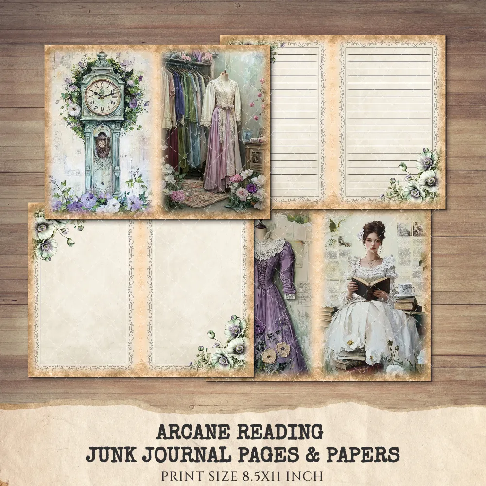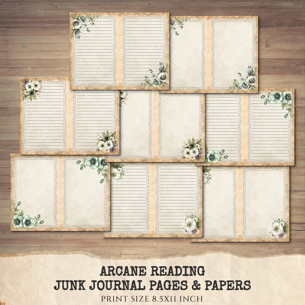 Arcane Reading Junk Journal Pages & Papers – Forest Library, Magical Book Printable, Fantasy Scrapbook, Enchanted, Floral, Digital Download