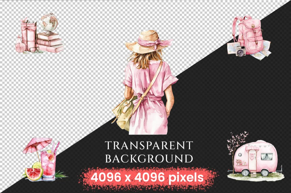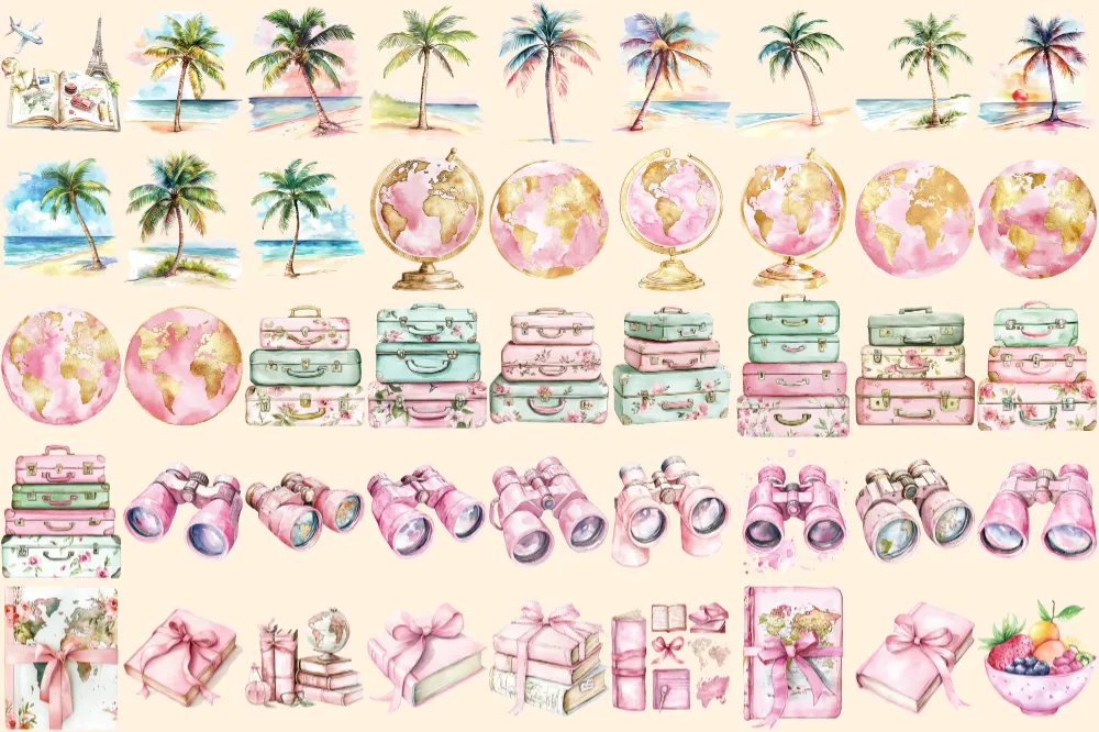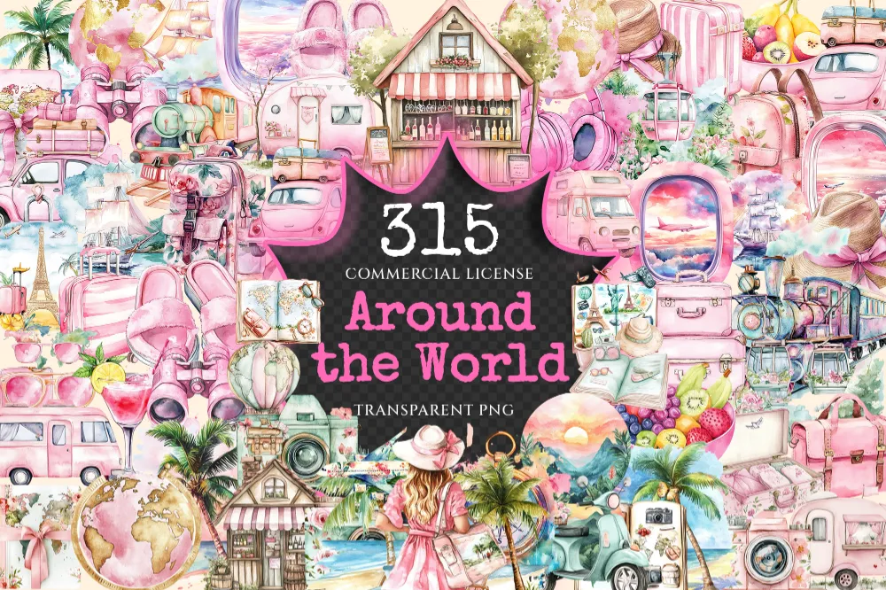 Around the World Watercolor Clipart Bundle – 312+ transparent PNG, Cute travel graphics, Travel png images, Commercial use, Digital download
