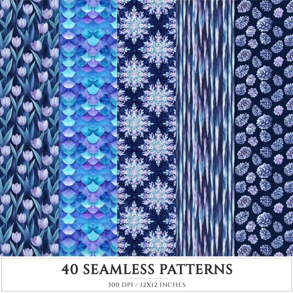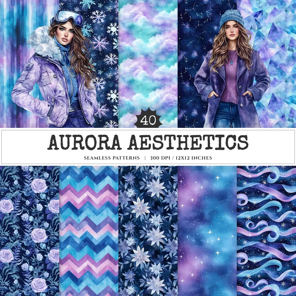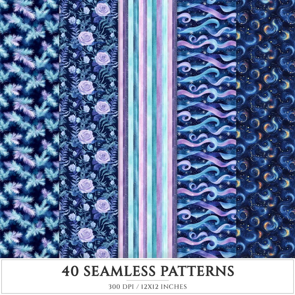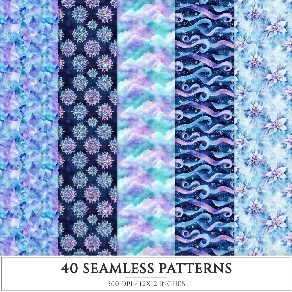Aurora Aesthetics Seamless Patterns, Northern Lights JPEG, Snowflake pattern, Winter, Polar Night repeating pattern, Digital scrapbook paper