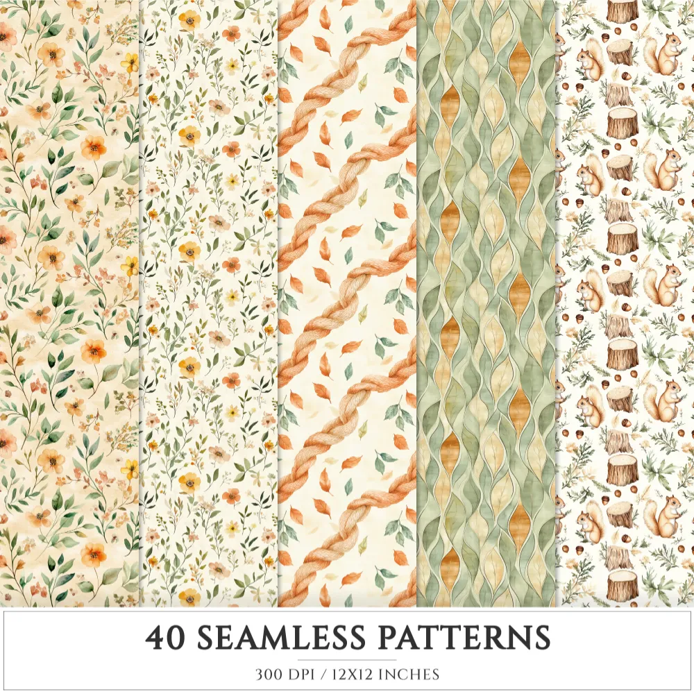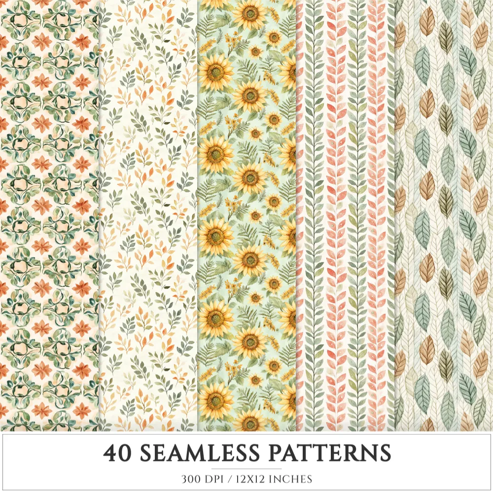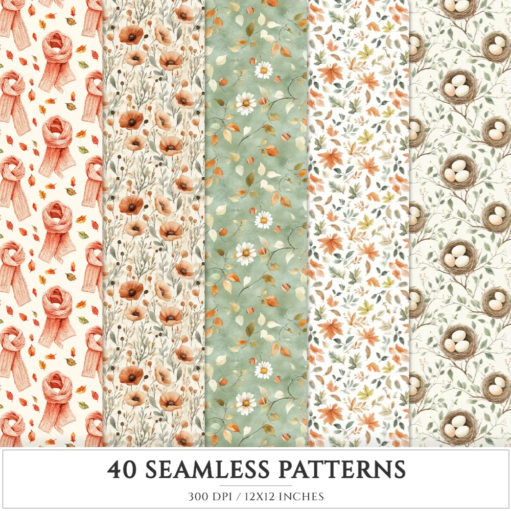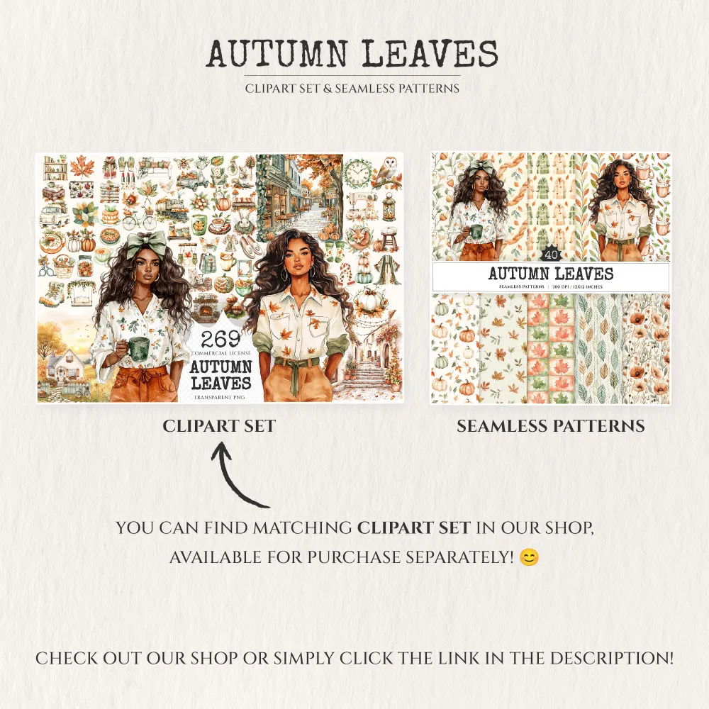 Autumn Leaves Seamless Patterns, Cozy autumn JPEG, Falling leaves pattern, Pumpkins, Foliage repeating pattern, Digital scrapbook paper