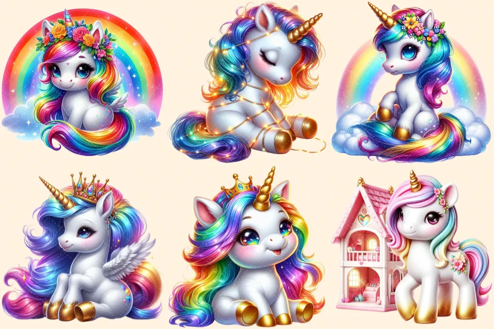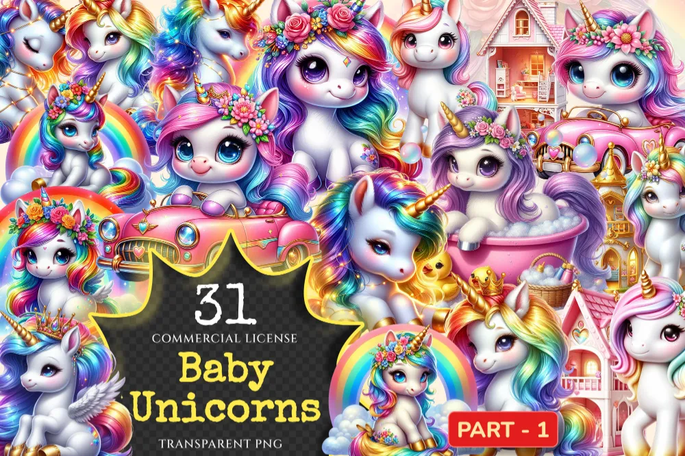 Baby Unicorns PNG Clipart Collection – 31 PNG, Magical unicorn illustrations, Playful printables, Commercial use, Digital download