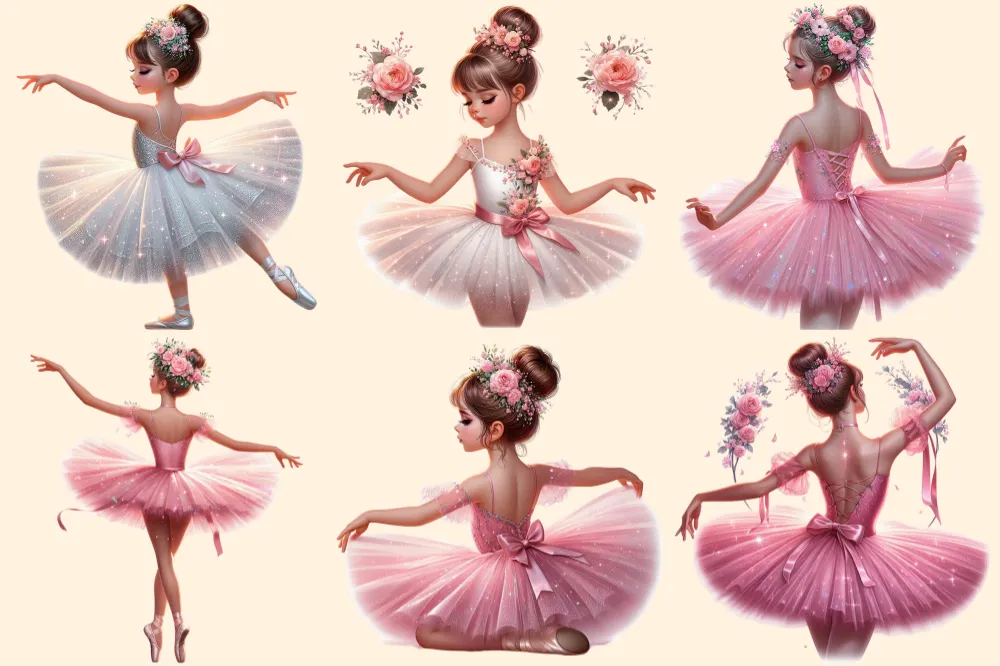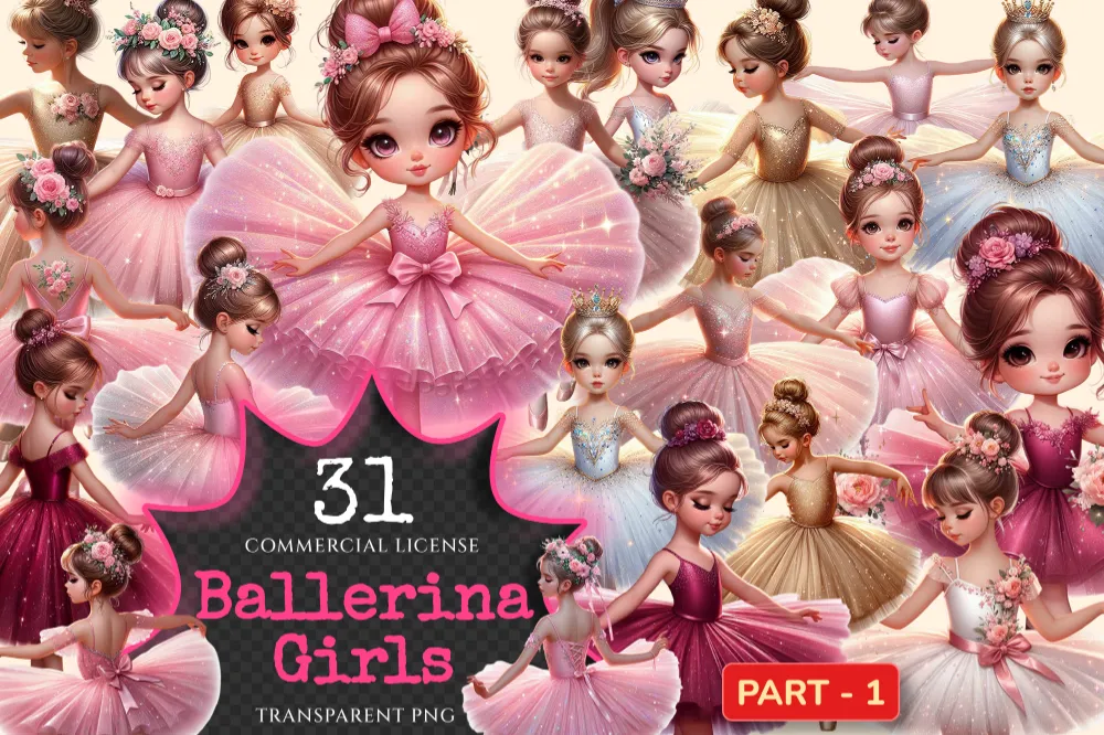 Ballerina Girls PNG Clipart Collection – 31 PNG, Elegant ballerina illustrations, Dance themed printables, Commercial use, Digital download
