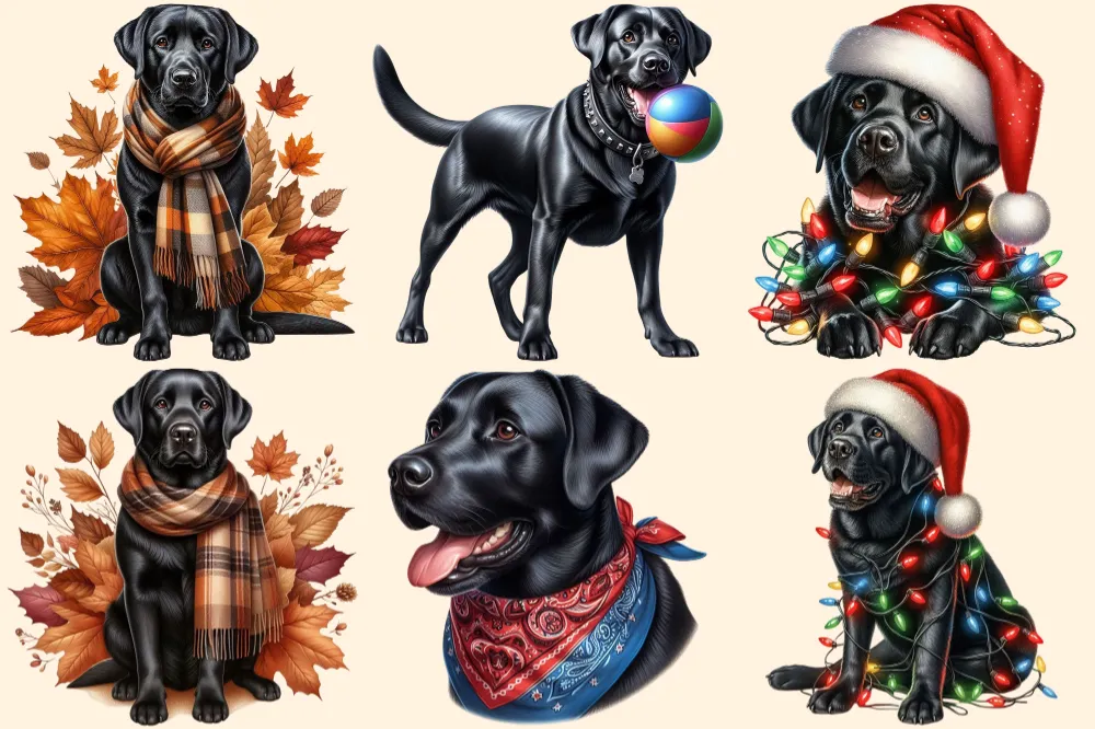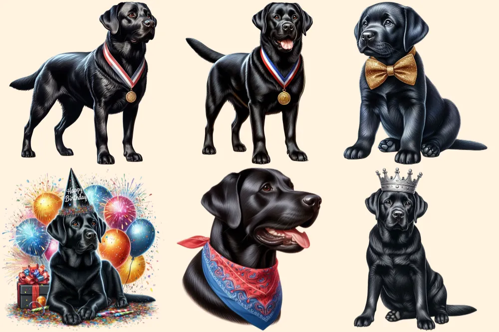 Black Labradors PNG Clipart Collection – 29 PNG, Labrador dog illustration, Cut pet printables, Commercial use, Digital download