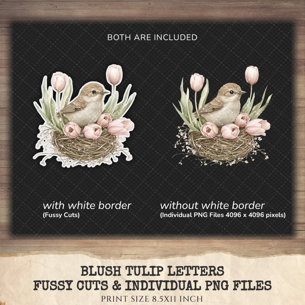 Blush Tulip Letters Clipart Set – Romantic Spring Illustrations, Vintage Tulip Graphics, Springtime, Floral, Spring Tulip, Digital download