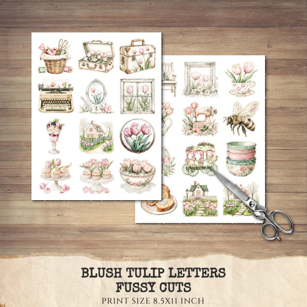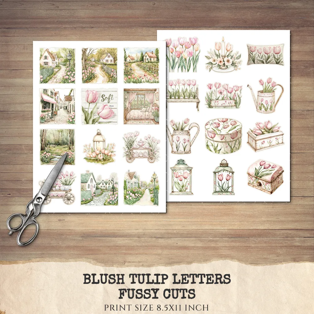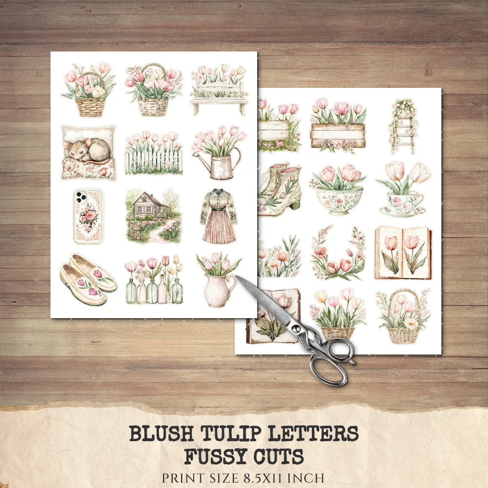 2. Blush Tulip Letters Junk Journal Pages & Papers: