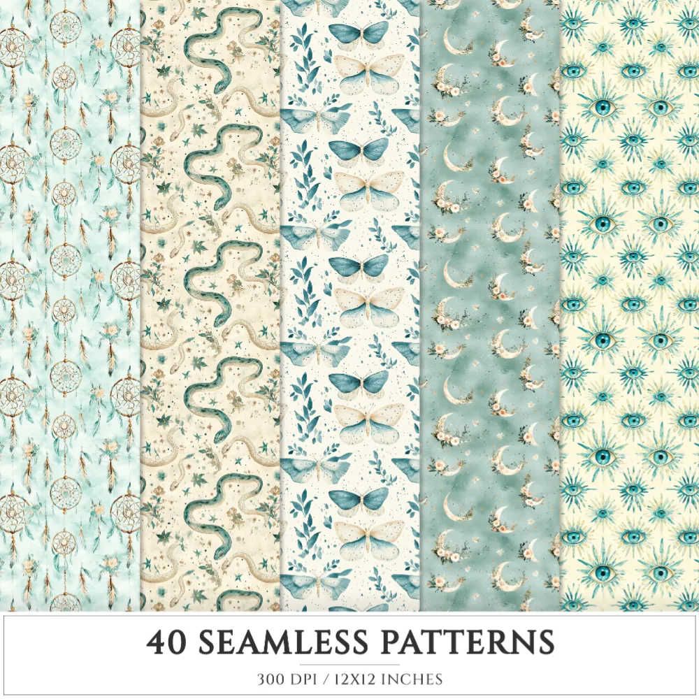 Bohemian Bird Muse Seamless Patterns, Boho chic JPEG, Feathers pattern, Floral, Dreamcatcher repeating pattern, Digital scrapbook paper