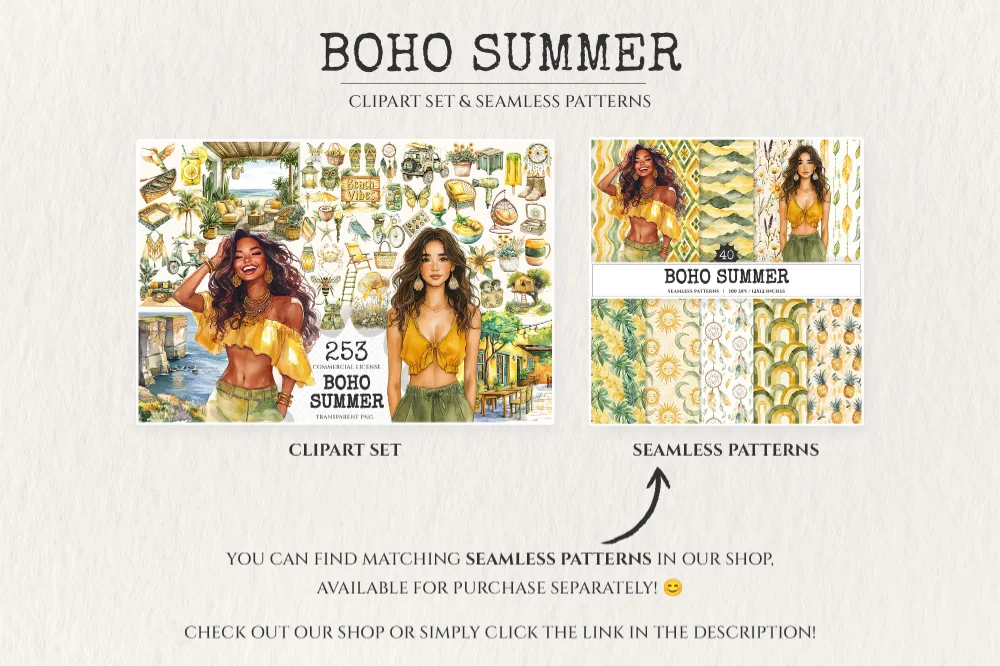 1. Boho Summer Seamless Patterns (40 JPG files):