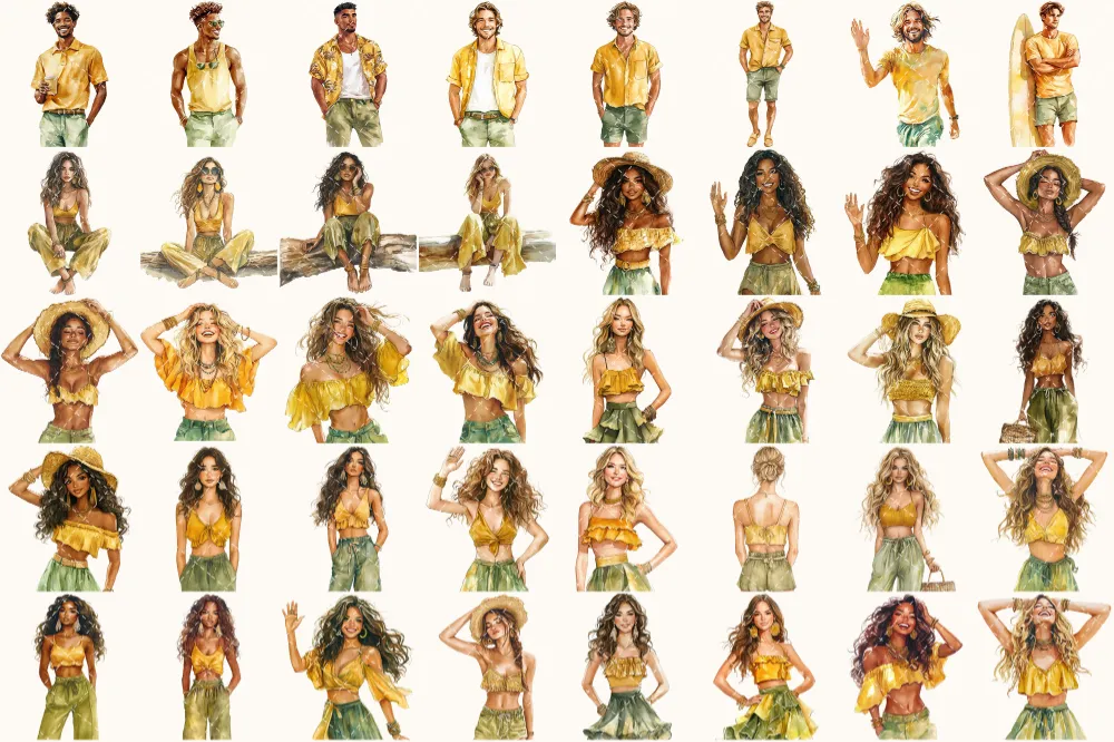Fashion designers and textile artists, discover the beauty of watercolor patterns and motifs. Use our watercolor clipart to create clothing, textiles, and fabric prints that are truly works of art. Elevate your fashion collections with these unique and artistic designs.