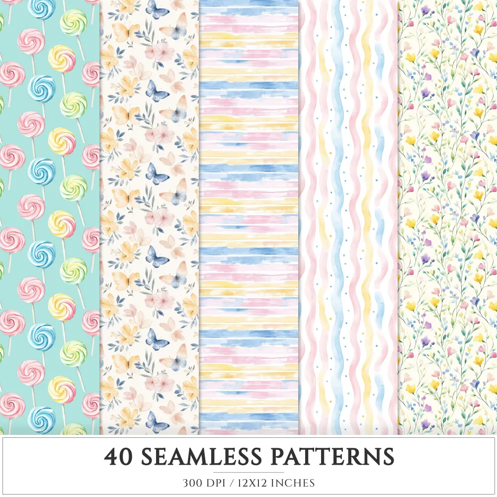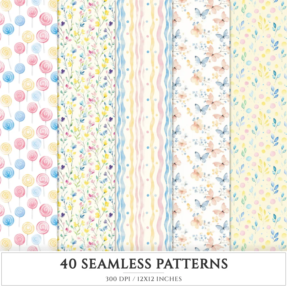 Bubbly Spring Seamless Patterns, Springtime floral JPEG, Sweet pastel pattern, Fun lollipop repeating pattern, Digital scrapbook paper