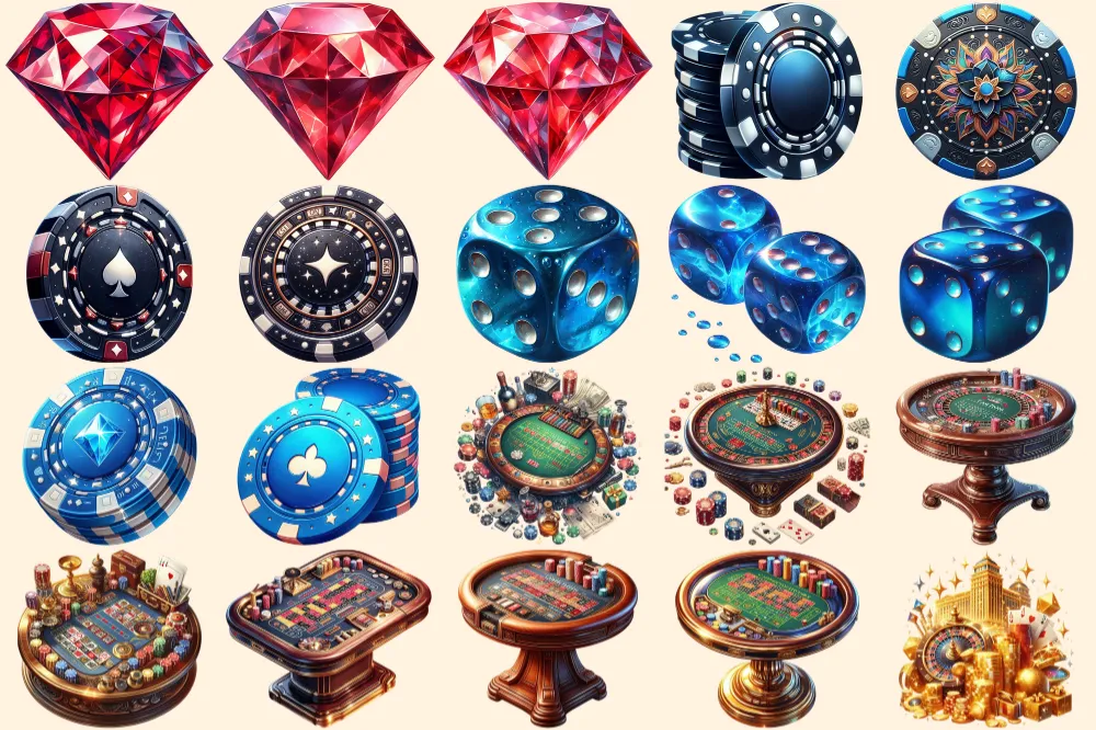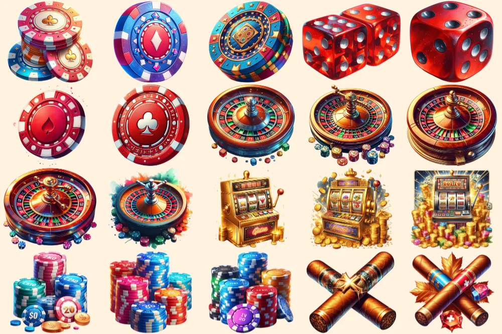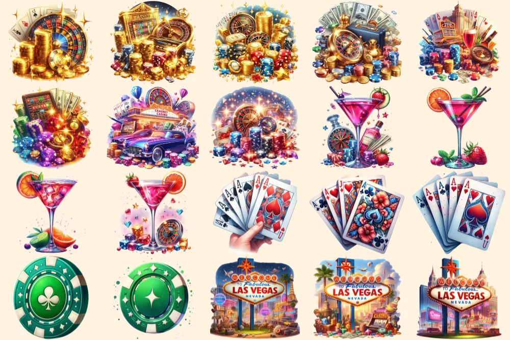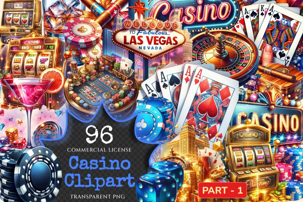 Casino PNG Clipart Collection – 96 PNG, Bold casino graphics, Colorful gambling printables, Commercial use, Digital download