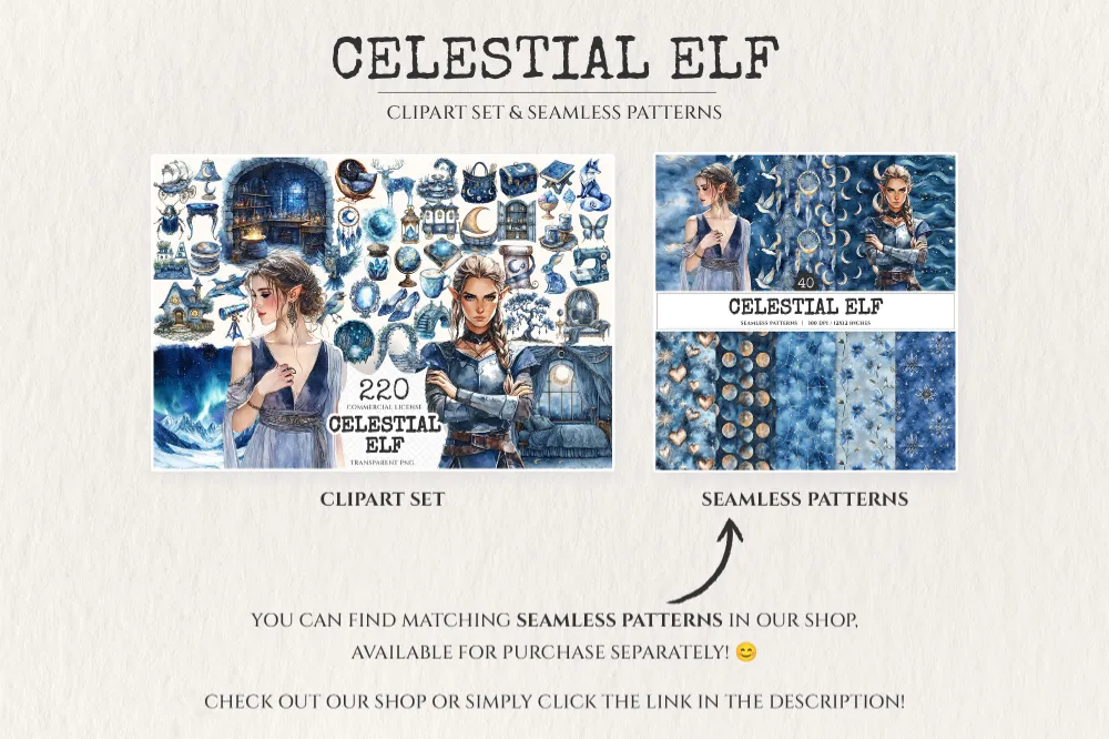 1. Celestial Elf Seamless Patterns (40 JPG files):