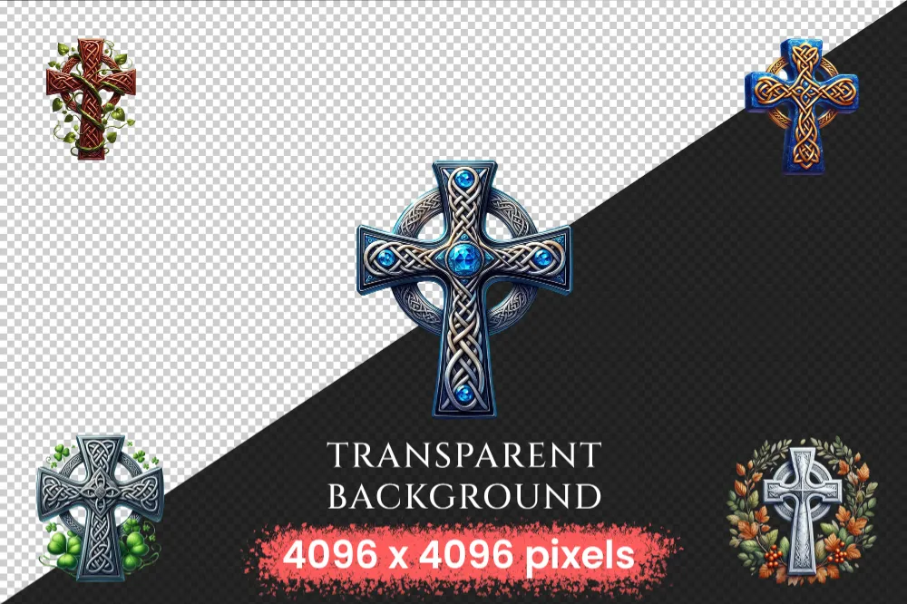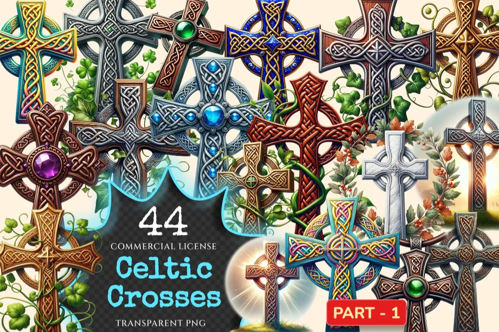 Celtic Crosses PNG Clipart Collection – 44 PNG, Knotwork crosses graphics, Intricate line printables, Commercial use, Digital download