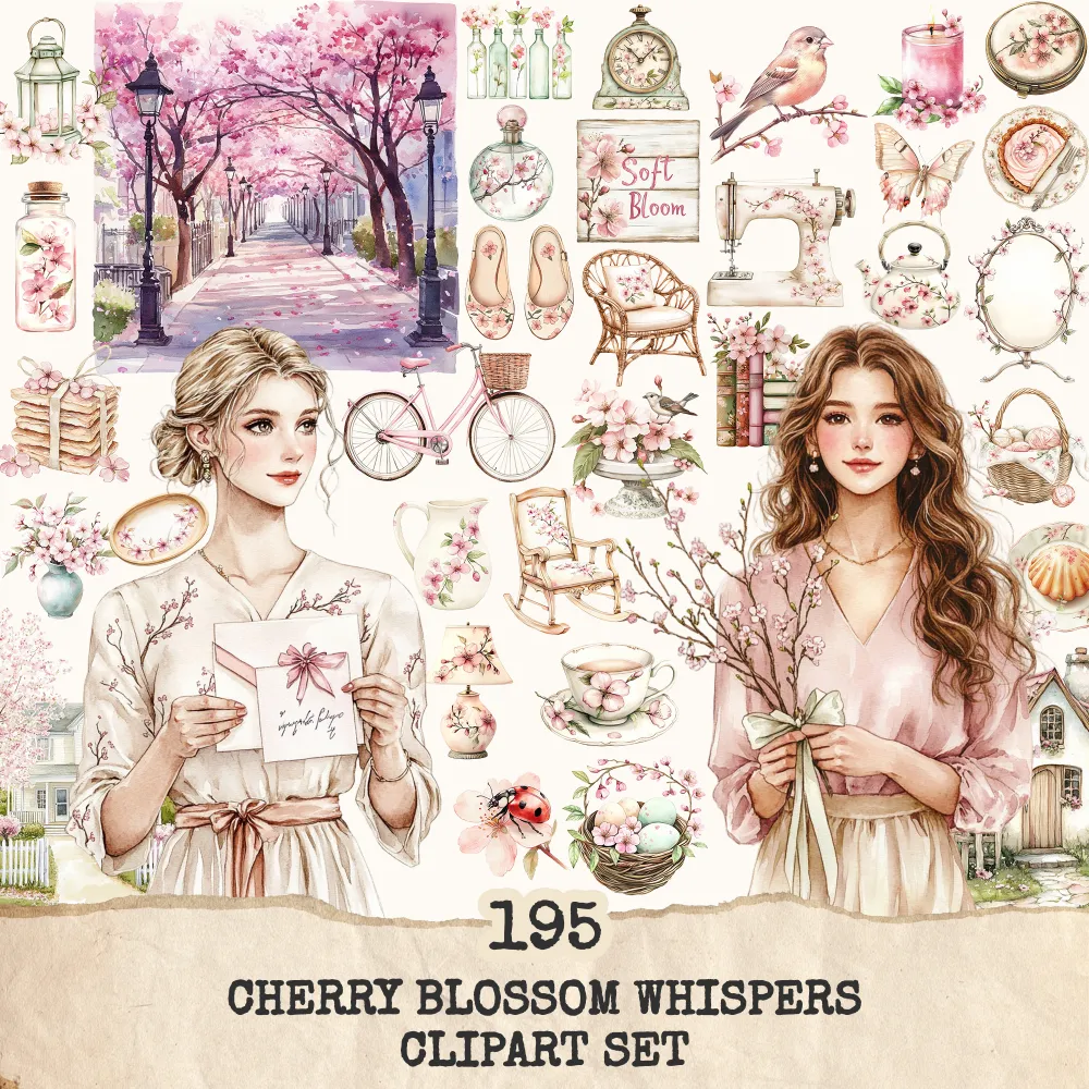 3. Cherry Blossom Whispers Clipart Set: