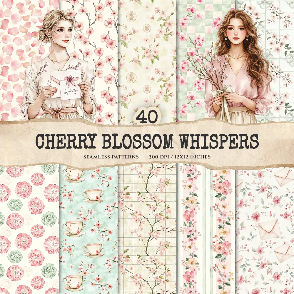 4. Cherry Blossom Whispers Seamless Patterns:
