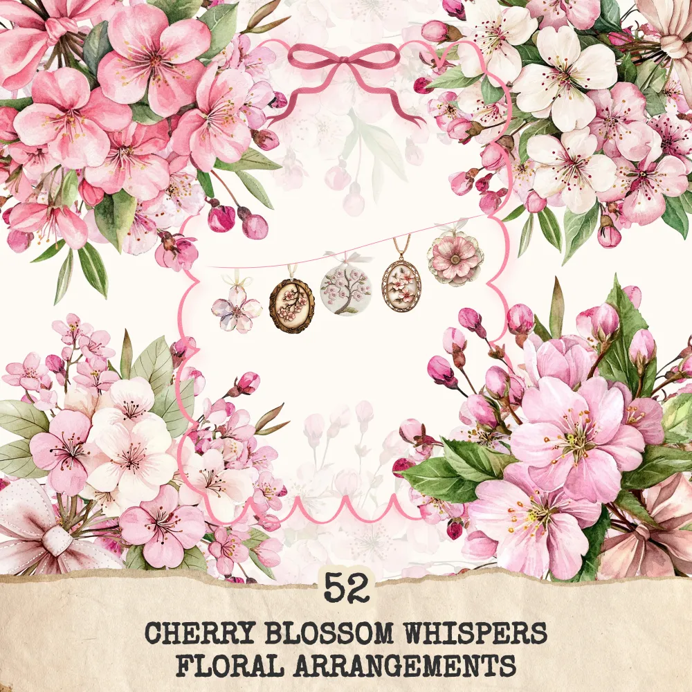 Cherry Blossom Whispers Mega Bundle – Junk Journal Pages, Ephemera, Kit, Soft Spring Floral Art, Sakura Graphics, Botanical, Digital Download