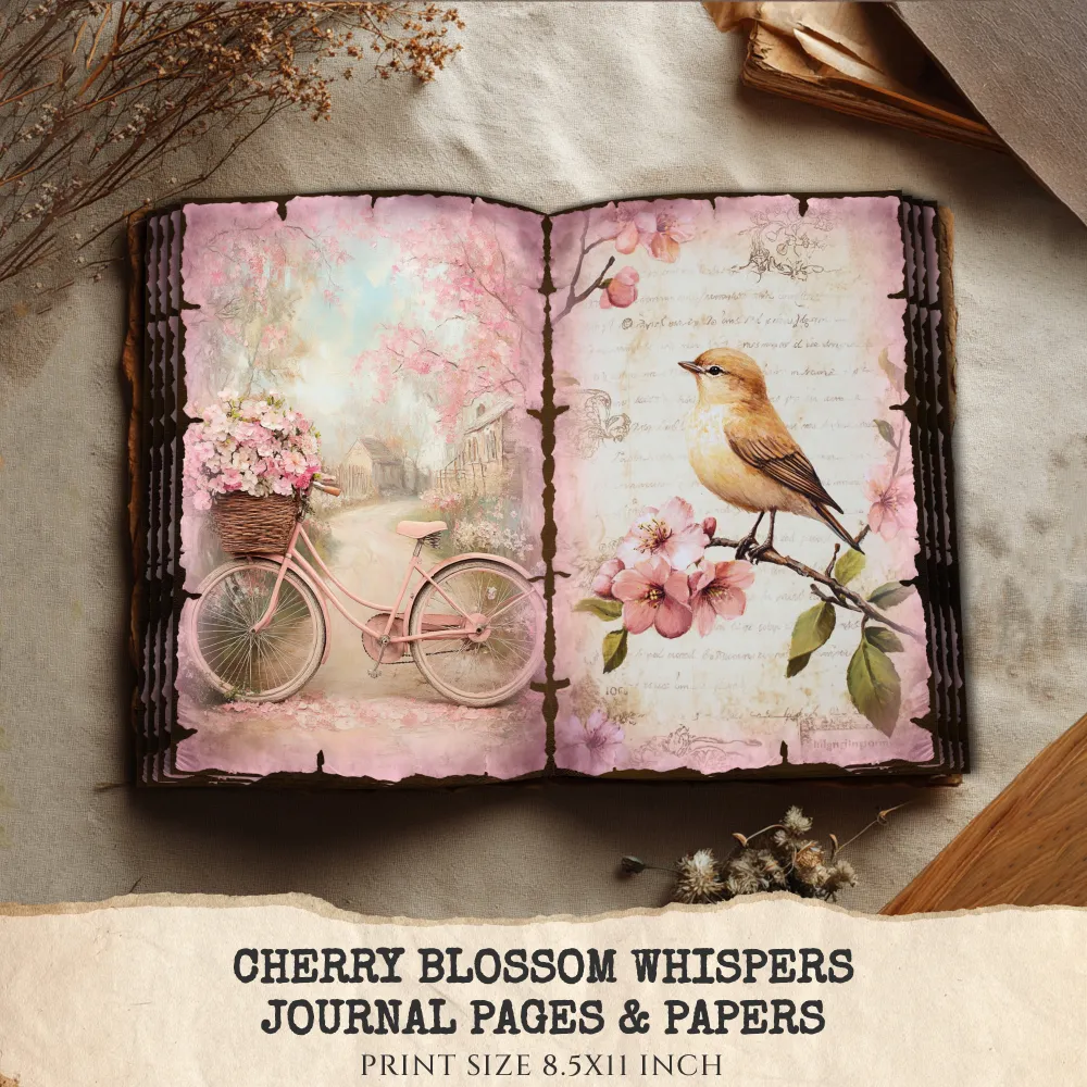 2. Cherry Blossom Whispers Junk Journal Pages & Papers: