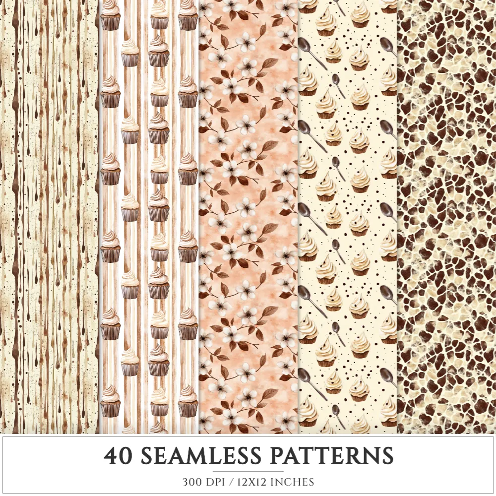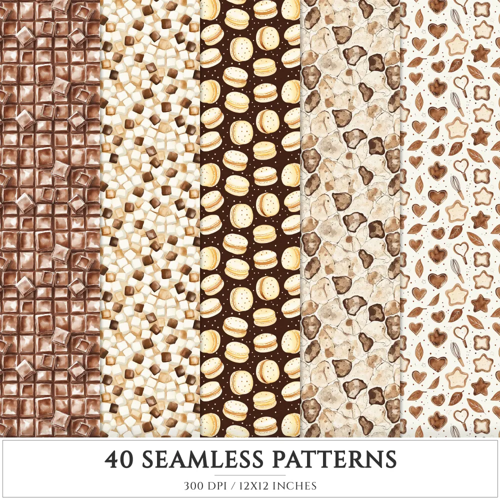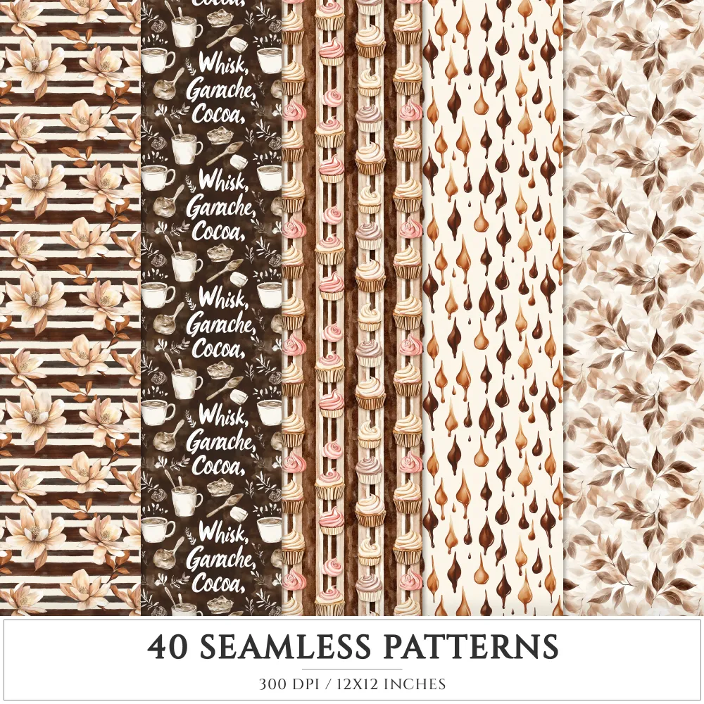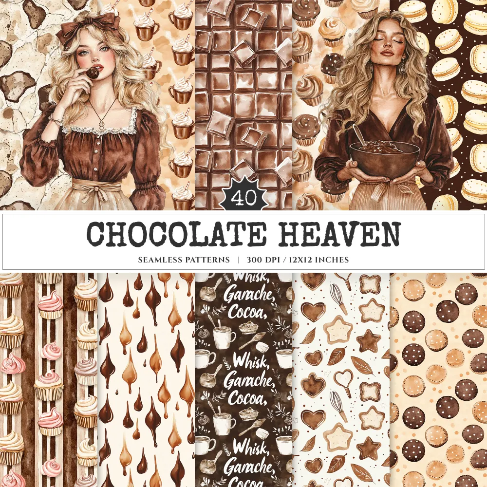 Chocolate Heaven Seamless Patterns, Chocolate Delights JPEG, Sweets pattern, Cupcake, Pastries repeating pattern, Digital scrapbook paper
