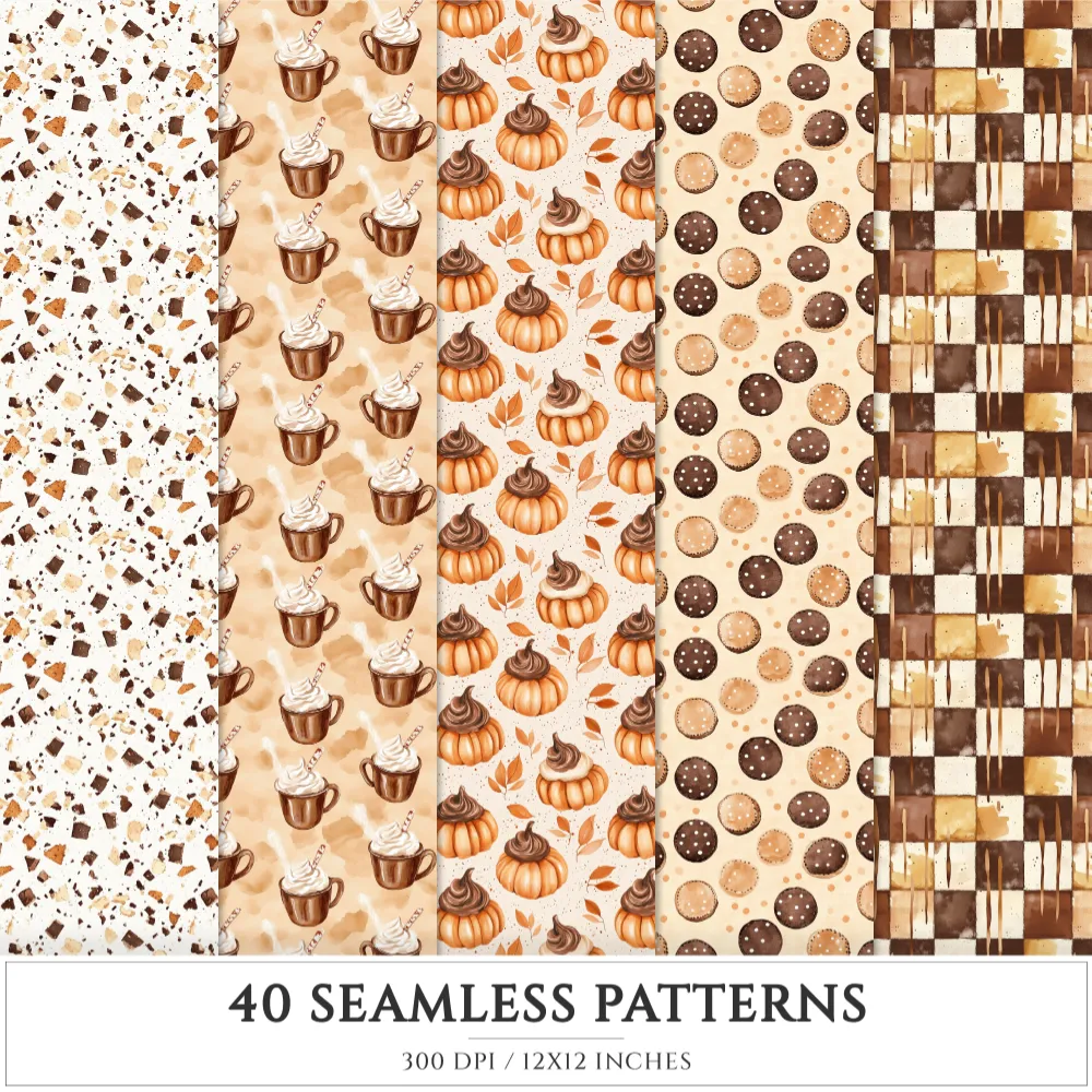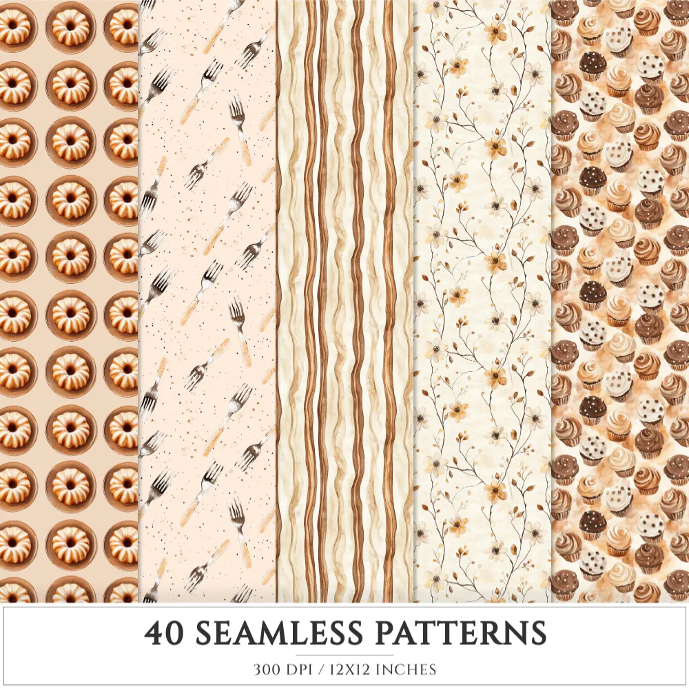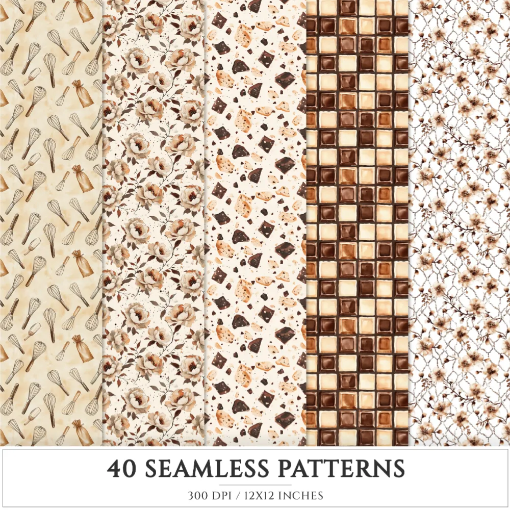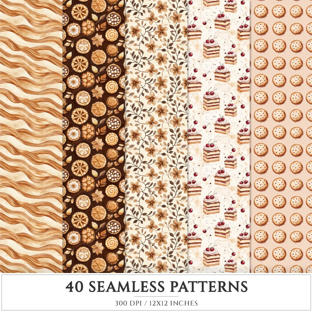 Chocolate Heaven Seamless Patterns, Chocolate Delights JPEG, Sweets pattern, Cupcake, Pastries repeating pattern, Digital scrapbook paper