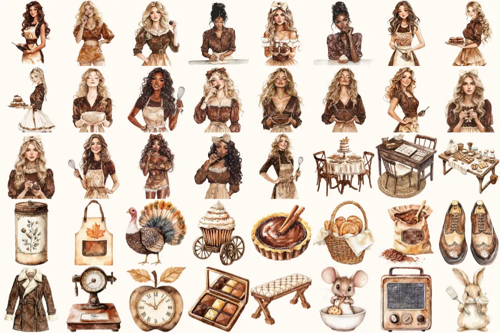 Chocolate Heaven Watercolor Clipart Set – 265+ transparent PNG, Cozy fall treats graphics, Pastry images, Commercial use, Digital download