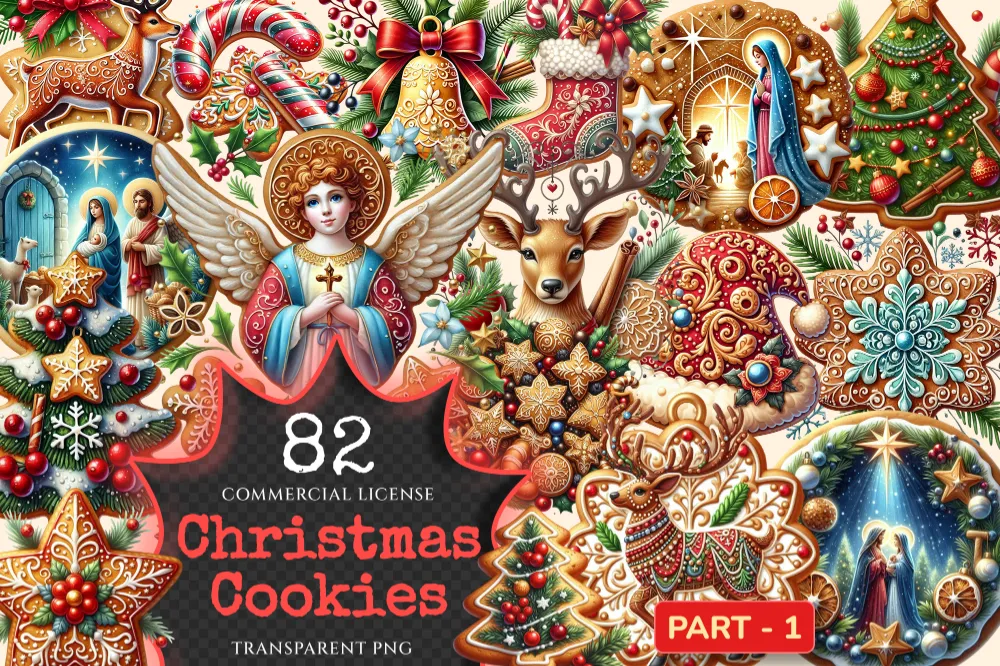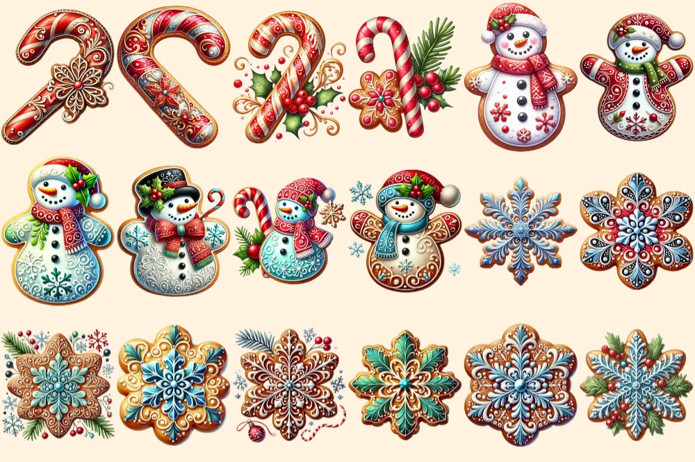 Christmas Cookies PNG Clipart Collection – 82 PNG, Holiday cookie graphics, Festive treat art, Commercial use, Digital download