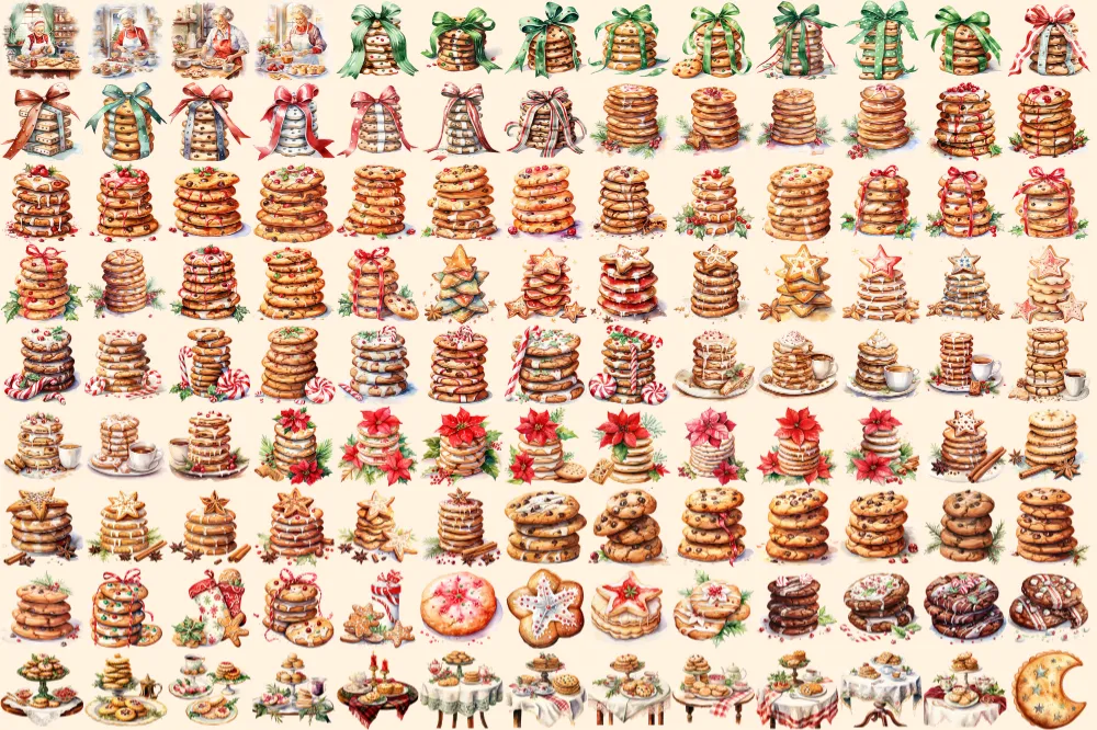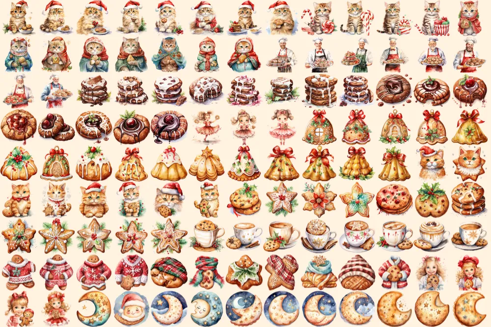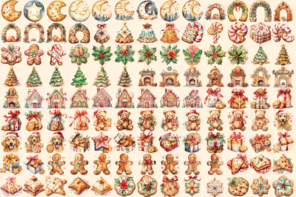 Christmas Cookies Watercolor Clipart Bundle – 815+ transparent PNG, Holiday cookie graphics, Festive baking, Commercial use,Digital download