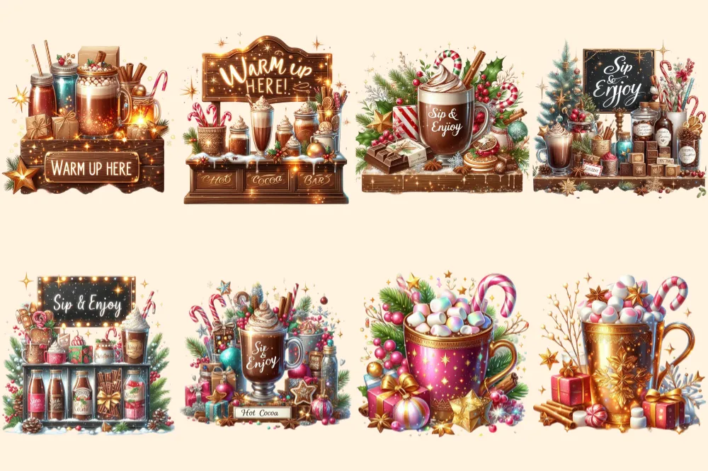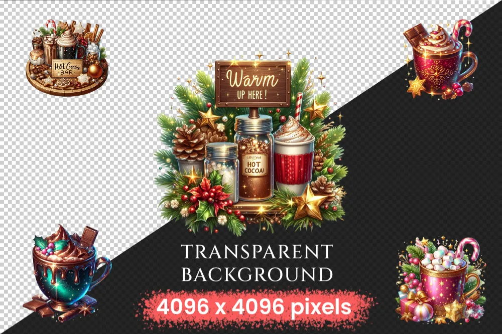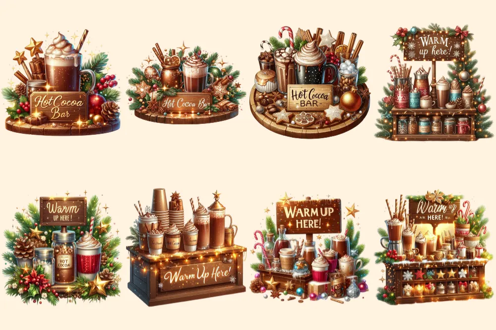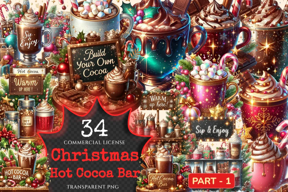 Christmas Hot Cocoa Bar PNG Clipart Collection – 34 PNG, Festive beverage station png, Festive art, Commercial use, Digital download