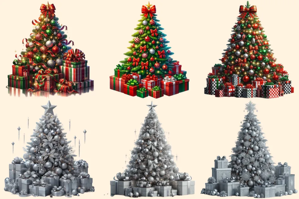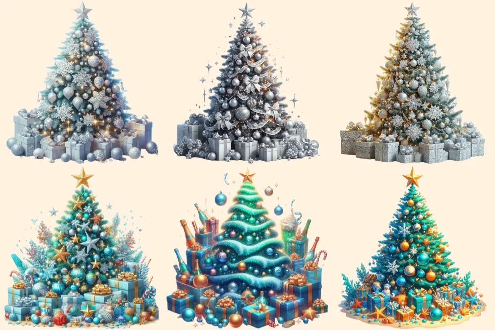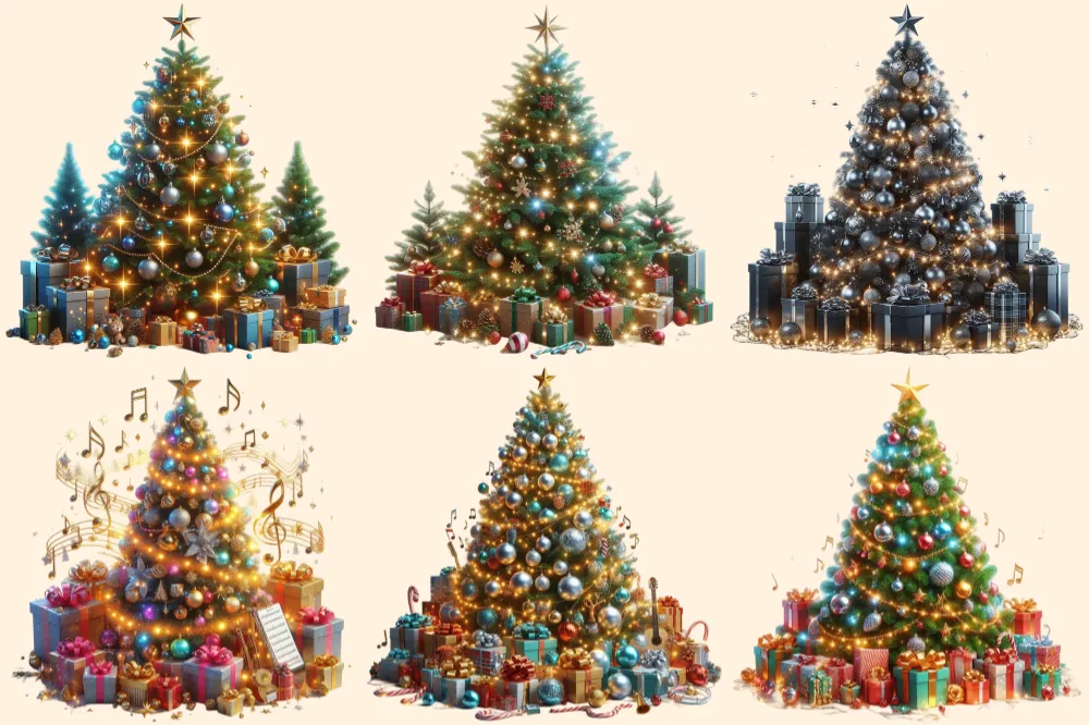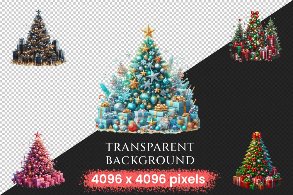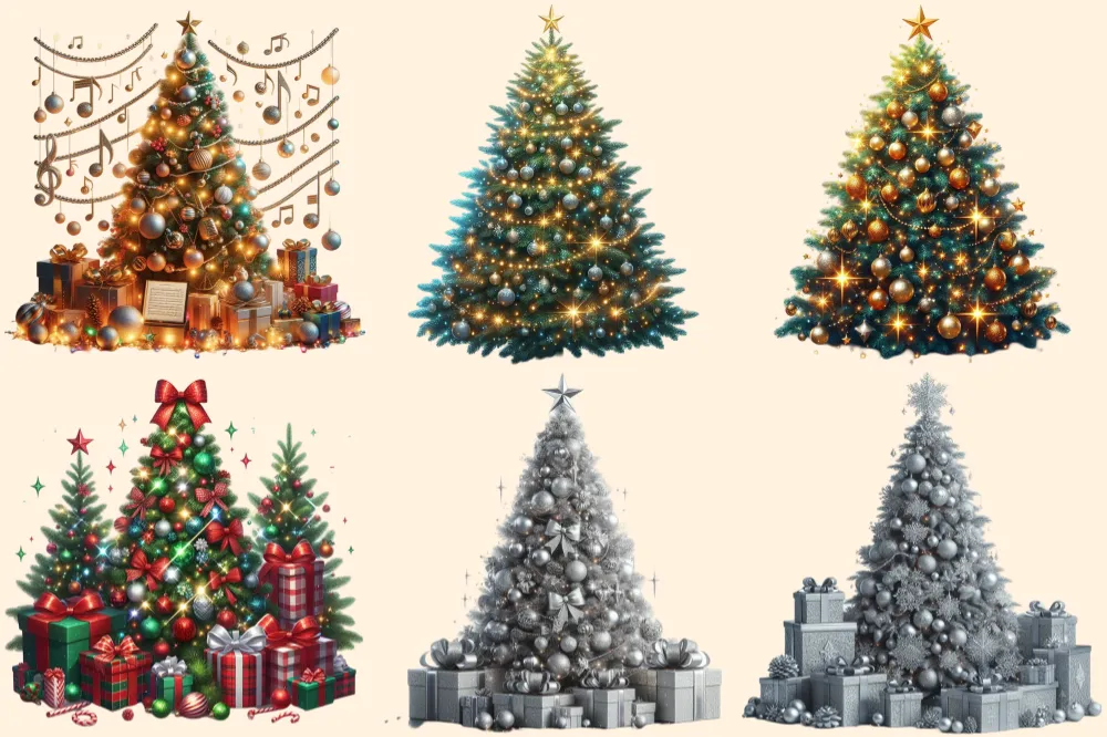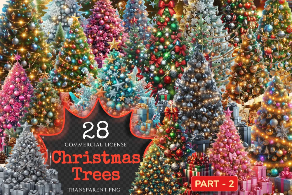 Christmas Trees (P-2) PNG Clipart Collection – 28 PNG, Festive tree images, Seasonal holiday illustrations, Commercial use, Digital download