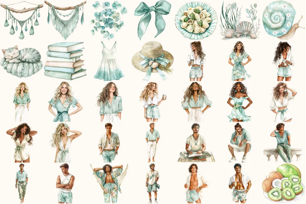 Fashion designers and textile artists, discover the beauty of watercolor patterns and motifs. Use our watercolor clipart to create clothing, textiles, and fabric prints that are truly works of art. Elevate your fashion collections with these unique and artistic designs.