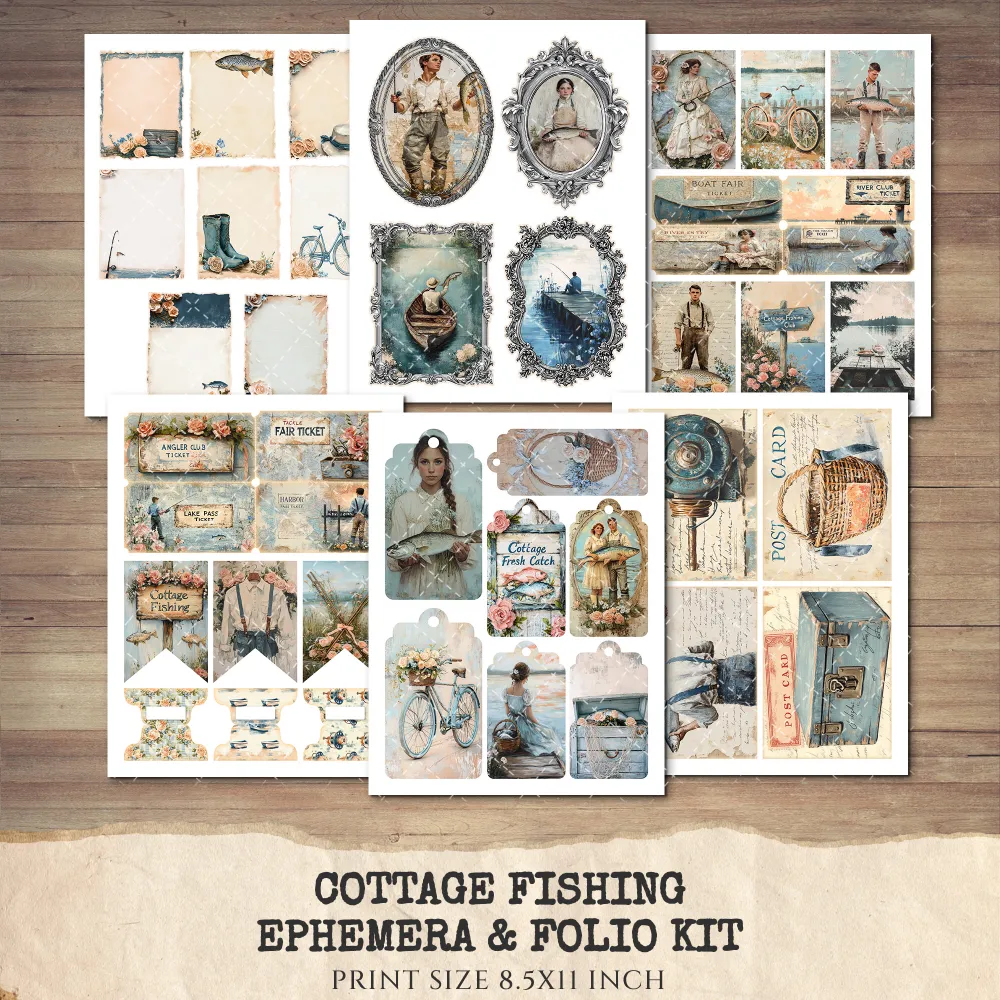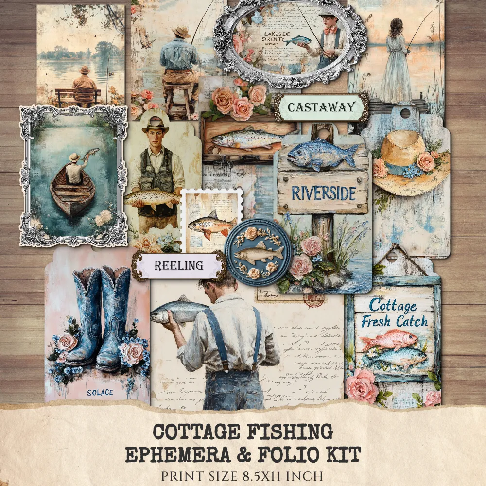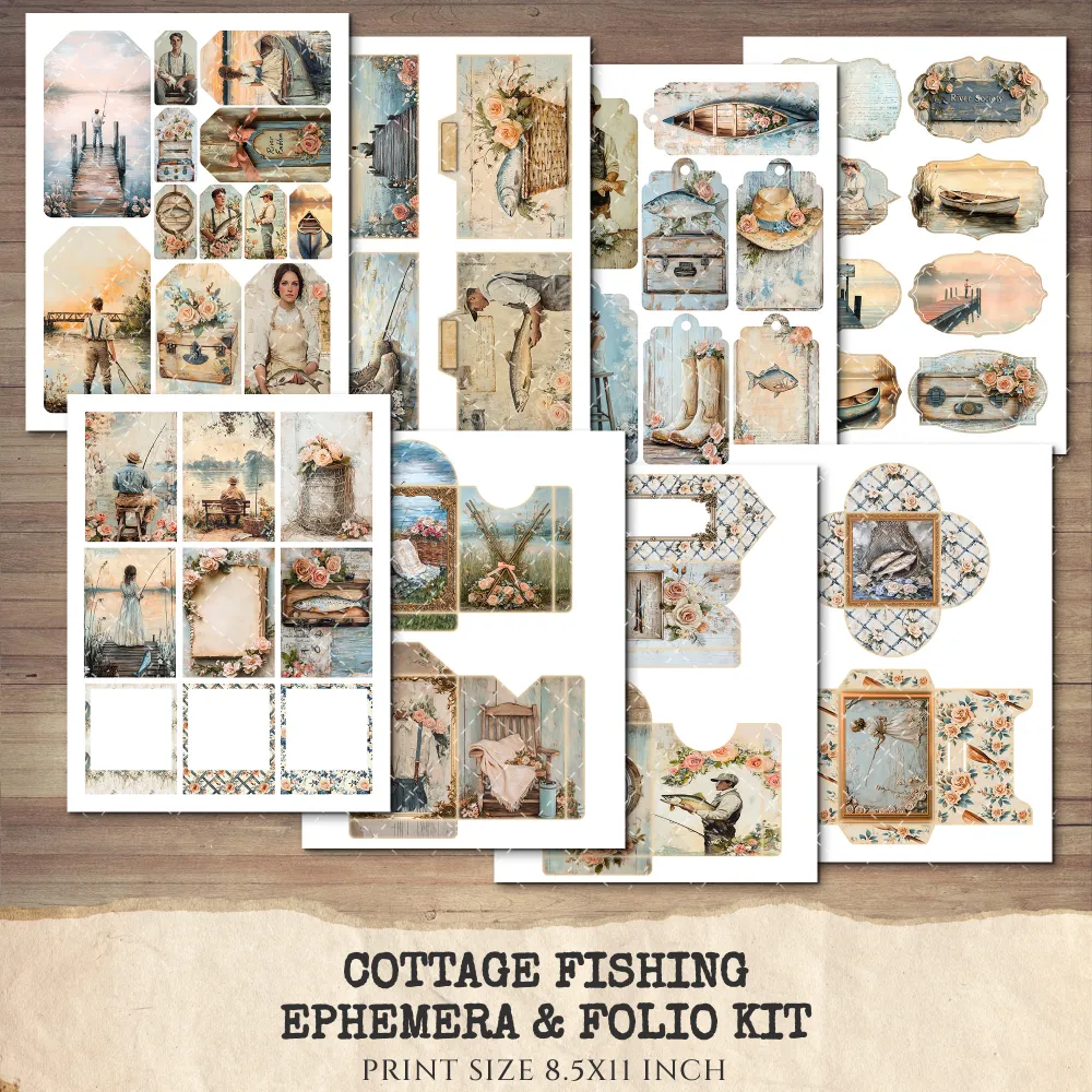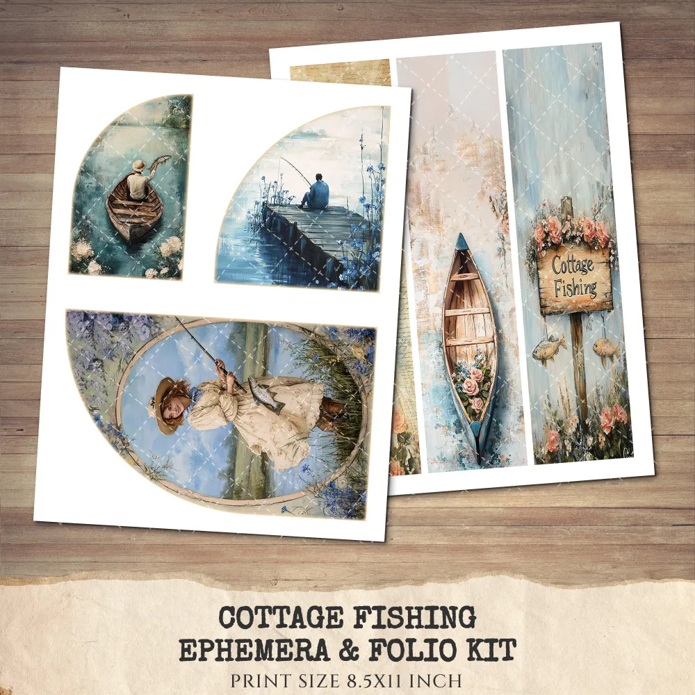 1. Cottage Fishing Junk Journal Pages & Papers: